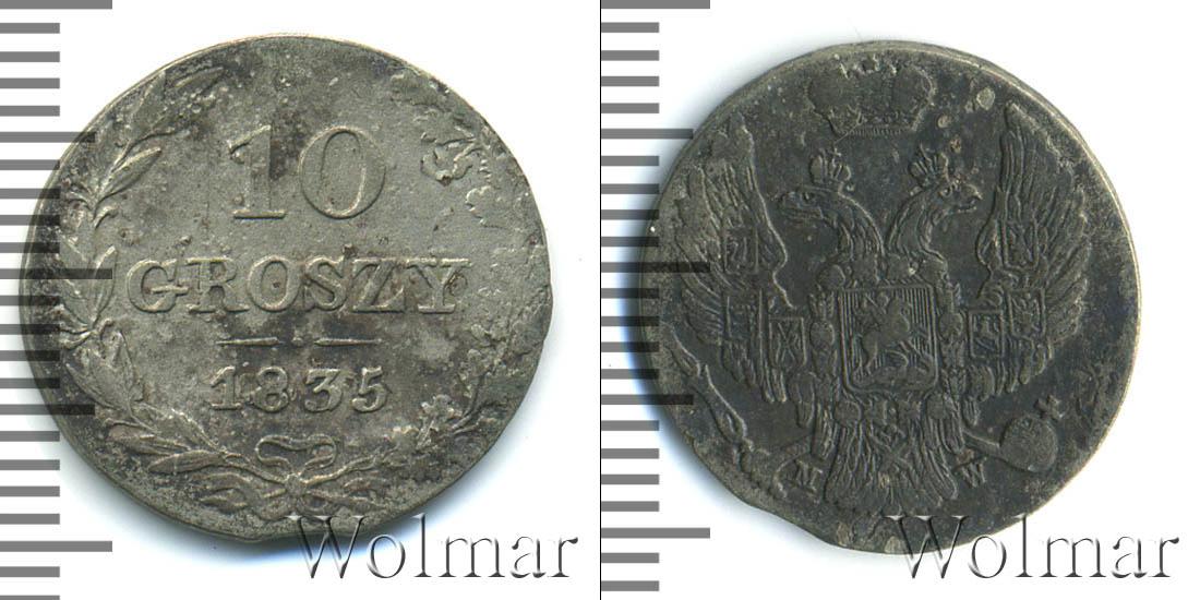 На диске монеты выбит номинал «10 GROSZY». По левому краю идет лавровая ветвь, по правому дубовая. Они перевязаны лентой в нижней части диска. Над лентой отчеканен год эмиссии монеты «1835».