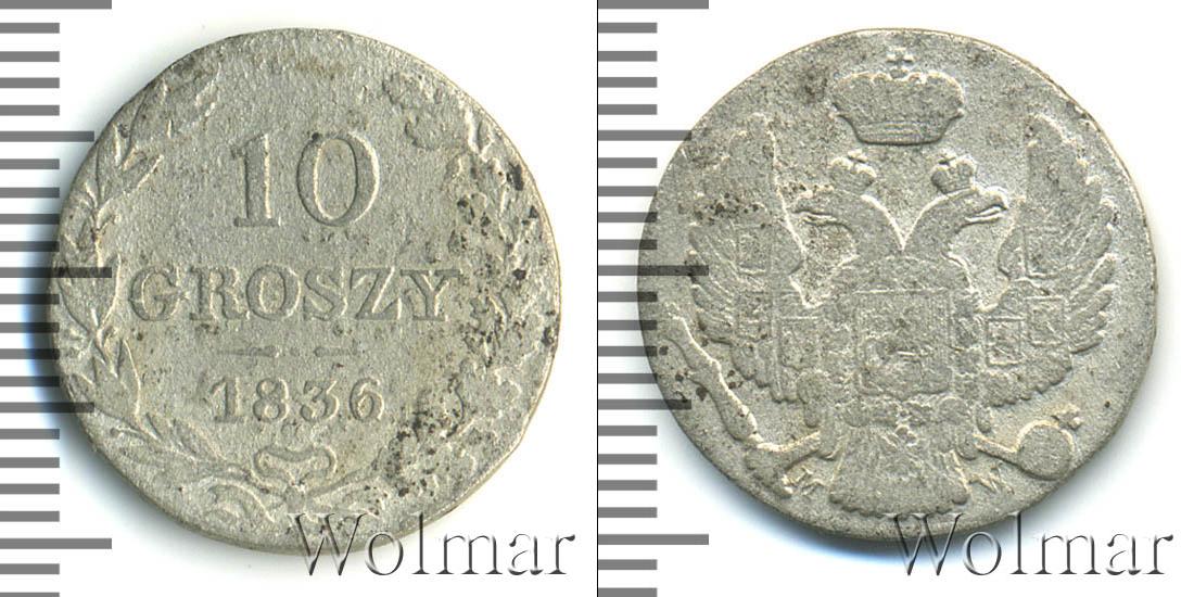 По краю монеты идет узор из лавровой и дубовой ветвей, перевязанных внизу лентой. В центре выгравирован номинал монеты «10 GROSZY» чуть ниже год чеканки «1836». Дату и номинал разделяет фигурная линия.