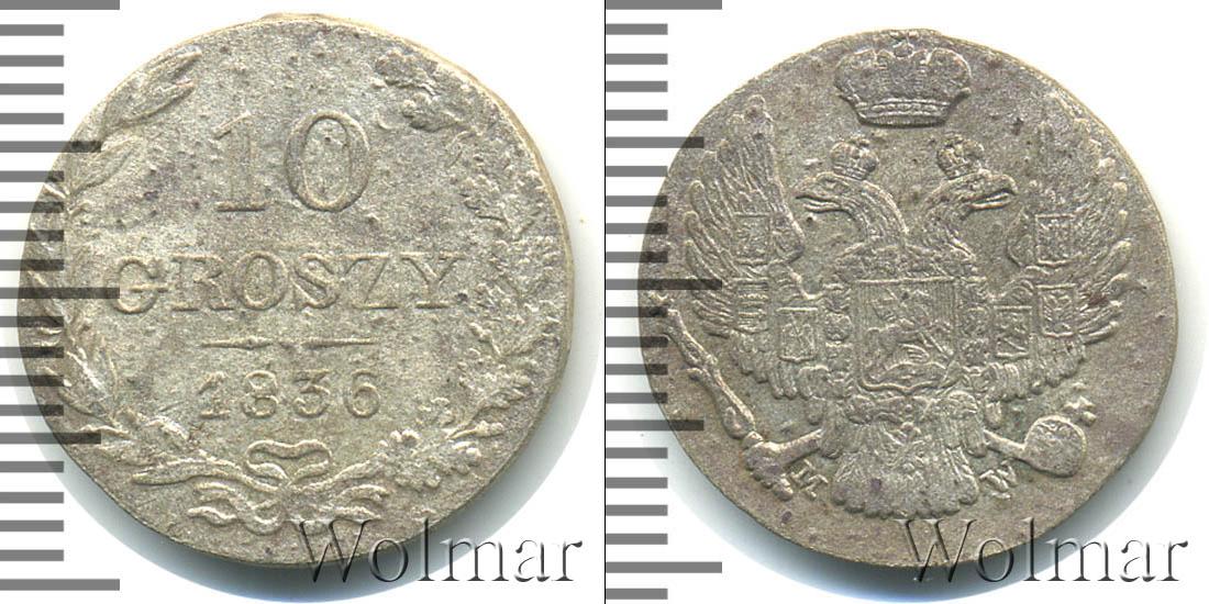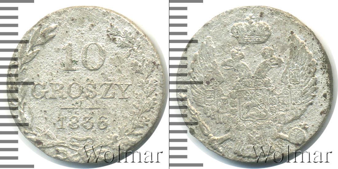 По краю монеты идет узор из лавровой и дубовой ветвей, перевязанных внизу лентой. В центре выгравирован номинал монеты «10 GROSZY» чуть ниже год чеканки «1836». Дату и номинал разделяет фигурная линия.
