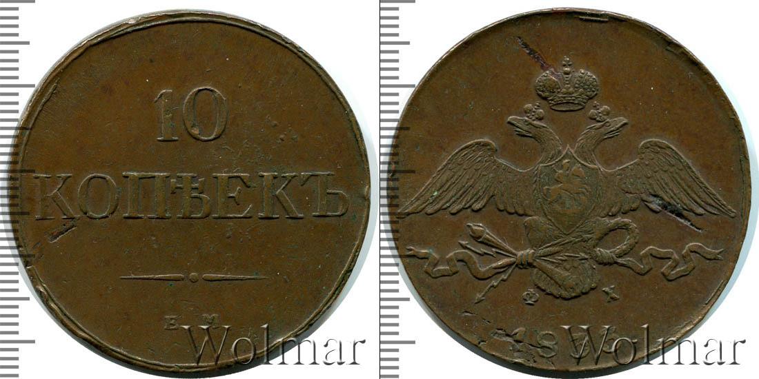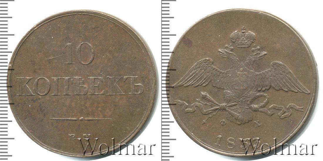 Одна из медных монет Николая Первого из династии Романовых. Государственный герб Российской Империи (двуглавый орел с гербом города Москвы на груди). Сделана отметка Ф.Х. (инициалы минцмейстера). Внизу указан год выпуска монеты – 1833.