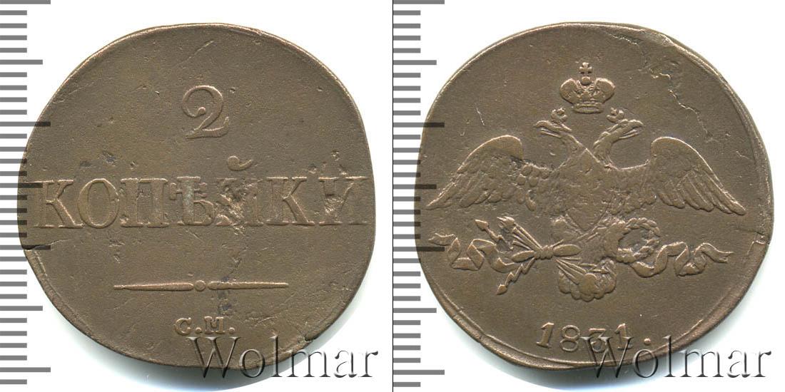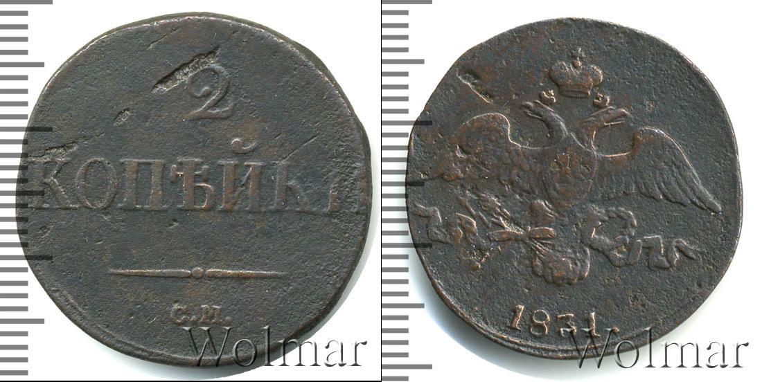 С оборотной стороны монеты отмечены номинал и монетный двор, где была отчеканена партия. Сверху вниз расположена надпись: 2 КОПЕЙКИ С.М. Единственным украшением диска является фигурная черта с точкой посередине.