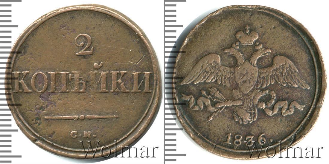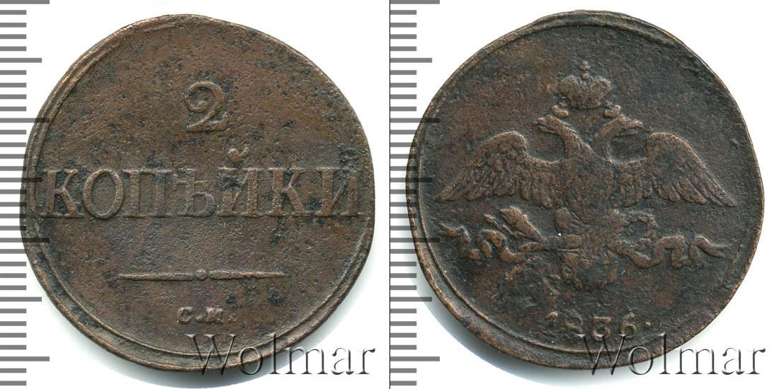 Цена монеты 2 копейки 1836 года в городе Москва на сегодня, 17 марта 2026 года