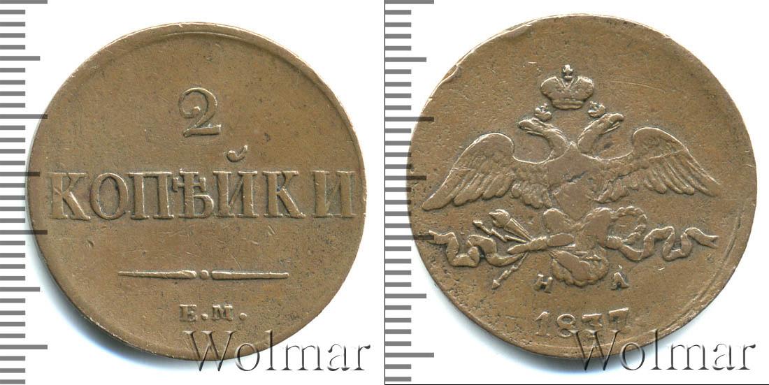 Цена монеты 2 копейки 1837 года в городе Москва на сегодня, 17 марта 2026 года