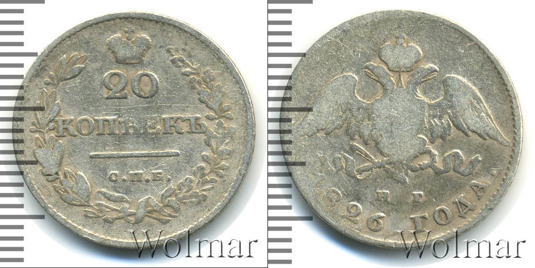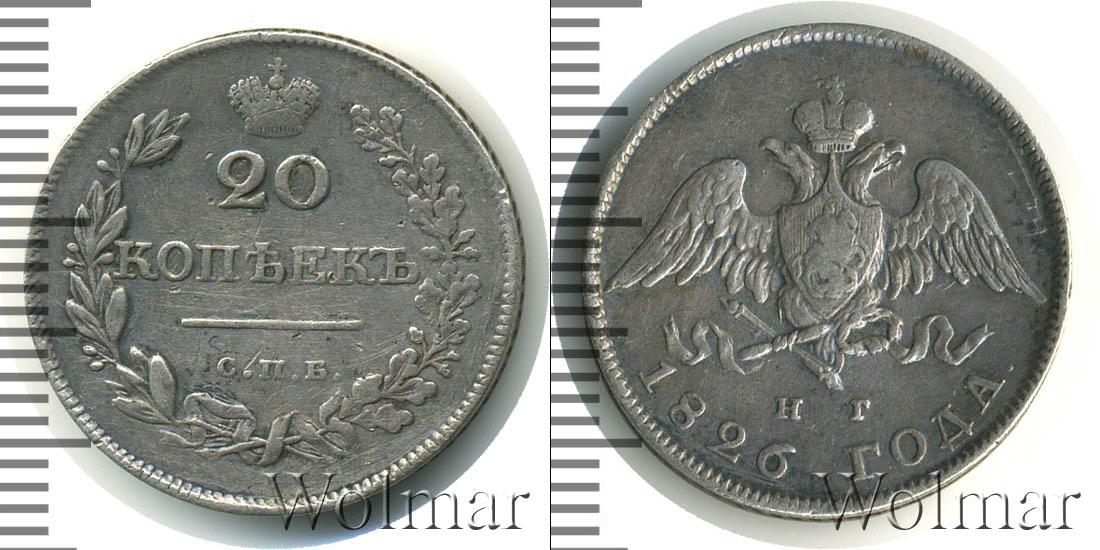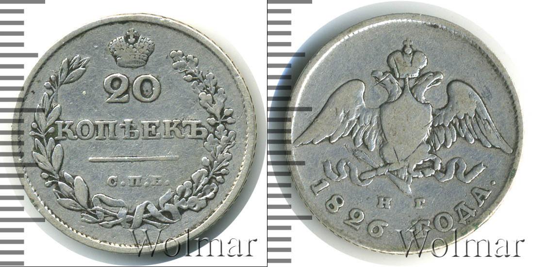 Цена монеты 20 копеек 1826 года в городе Москва на сегодня, 15 марта 2026 года