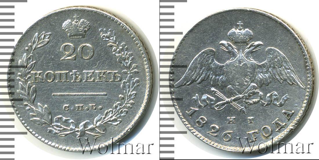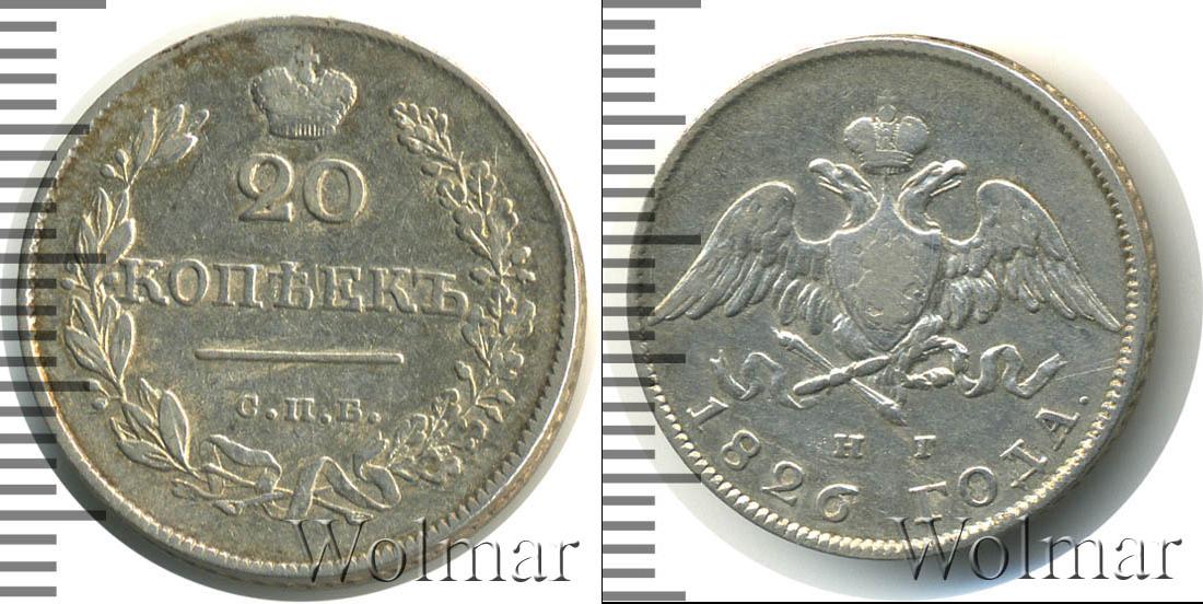 Цена монеты 20 копеек 1826 года в городе Москва на сегодня, 15 марта 2026 года