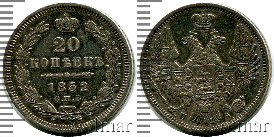 Цена монеты 20 копеек 1852 года в городе Москва на сегодня, 15 марта 2026 года