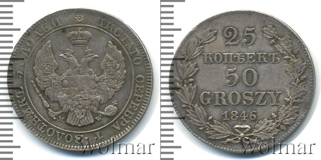 Варшавский монетный двор. Биткин №# 867.1252, тираж 561 263, Уздеников №# 4173. По каталогу Wolmar # 439/6. 25 копеек - 50 грошей MW