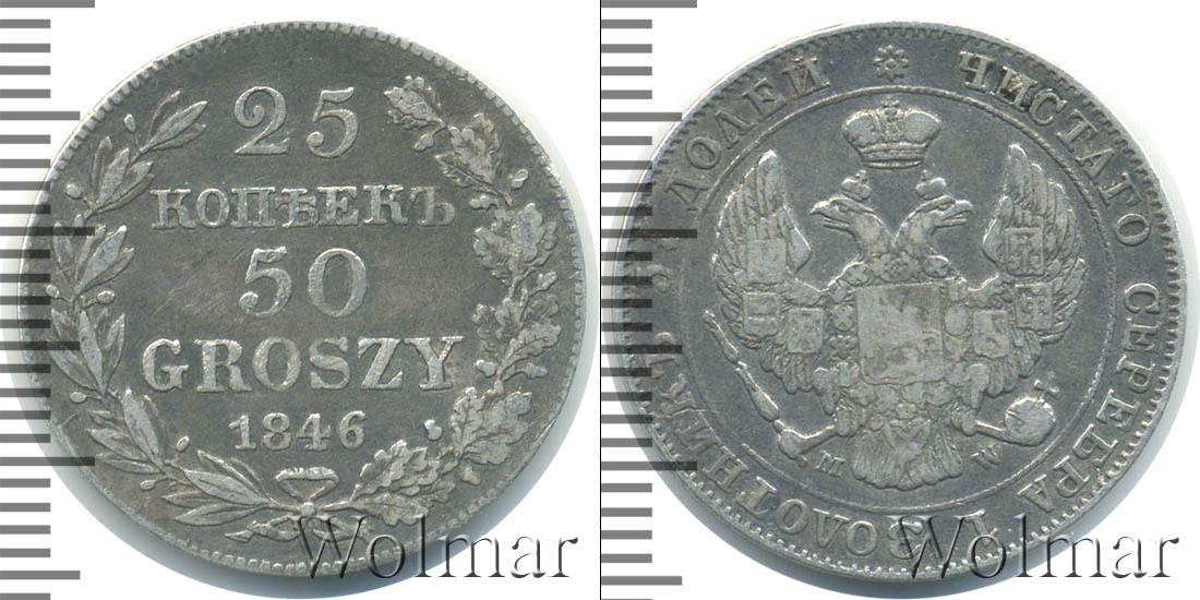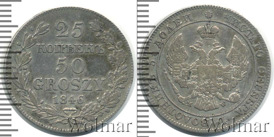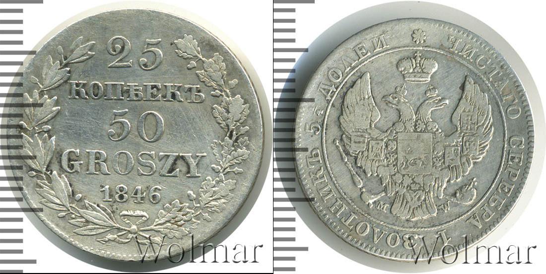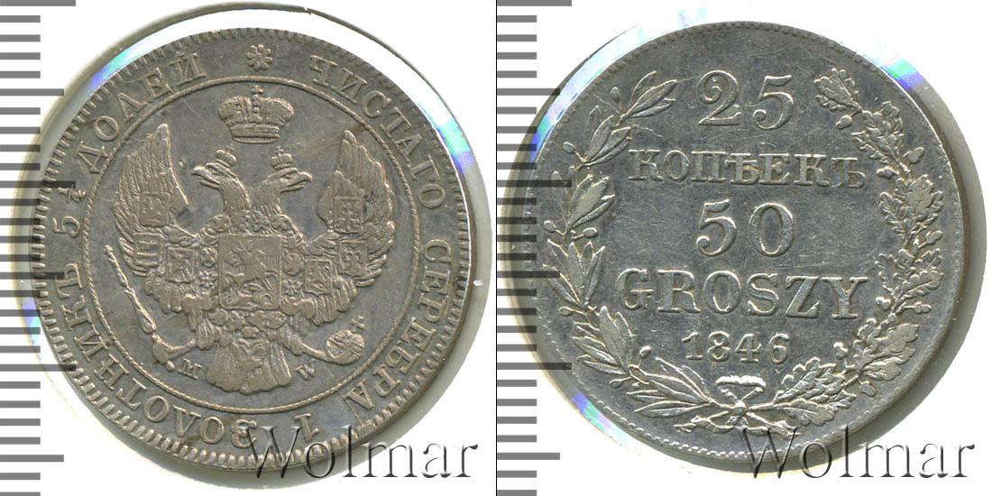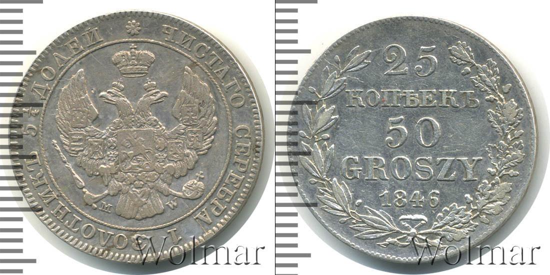 Варшавский монетный двор. Биткин №# 867.1252, тираж 561 263, Уздеников №# 4173. По каталогу Wolmar # 439/6. 25 копеек - 50 грошей MW