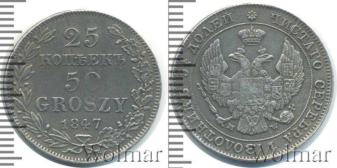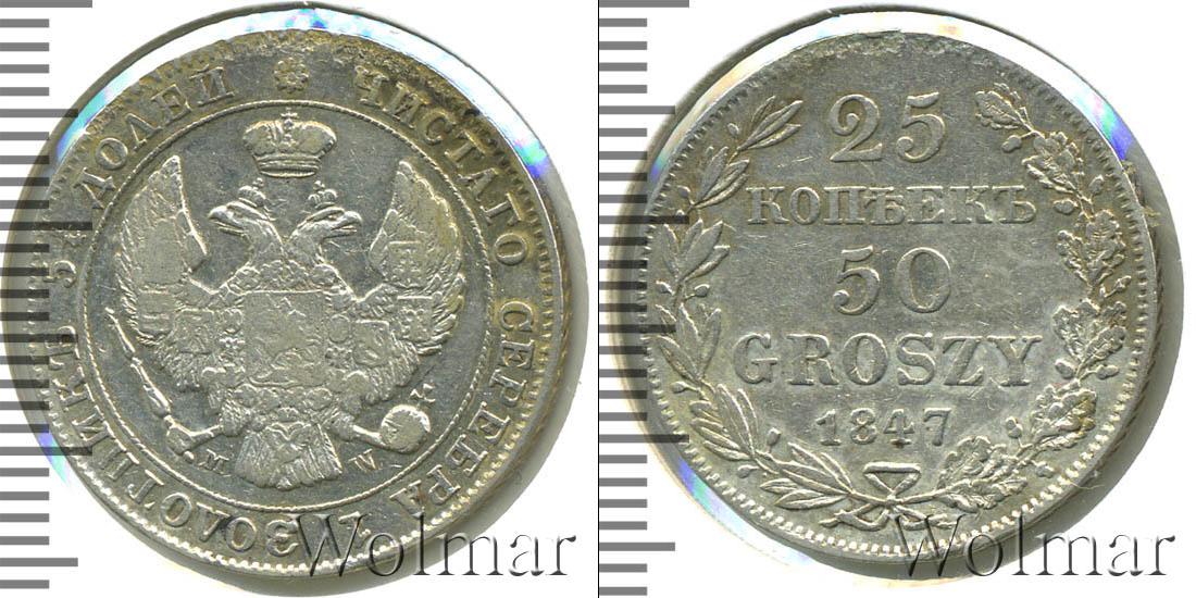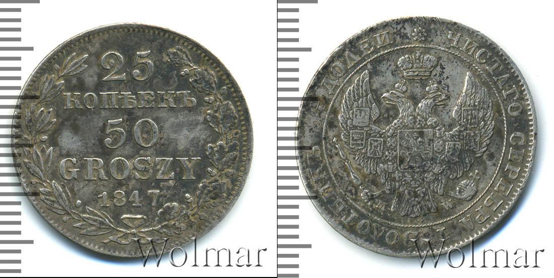 Цена монеты 25 копеек—50 грошей 1847 года в городе Москва на сегодня, 17 марта 2026 года