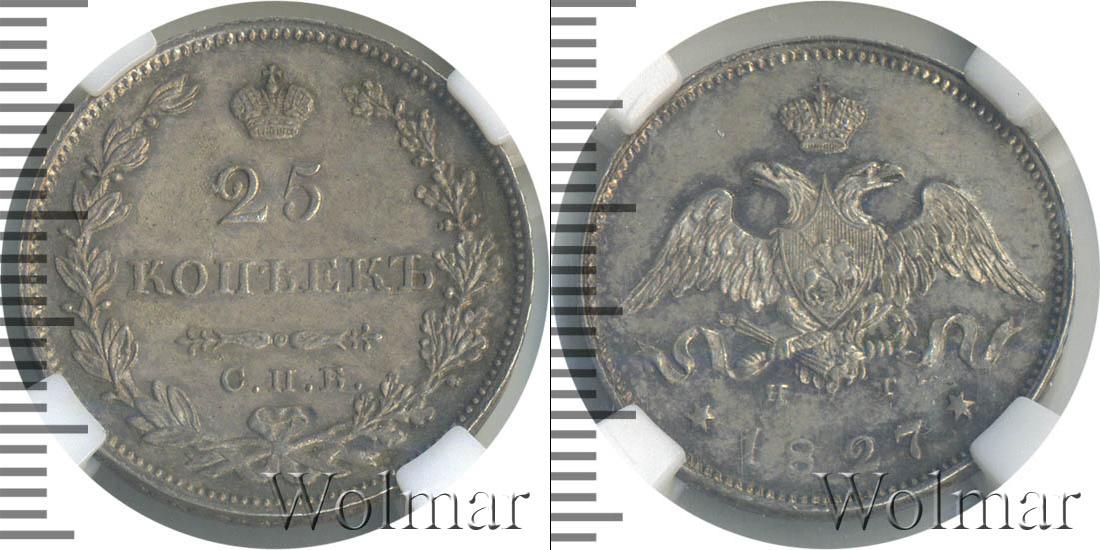 В слабе ННР. Топ грейд по базе нумизматического рестра. Санкт-Петербургский монетный двор. Биткин №# 805.123-124, тираж 1 860 002; Уздеников №# 1515. По каталогу Wolmar # 115/1. 25 копеек СПБ НГ