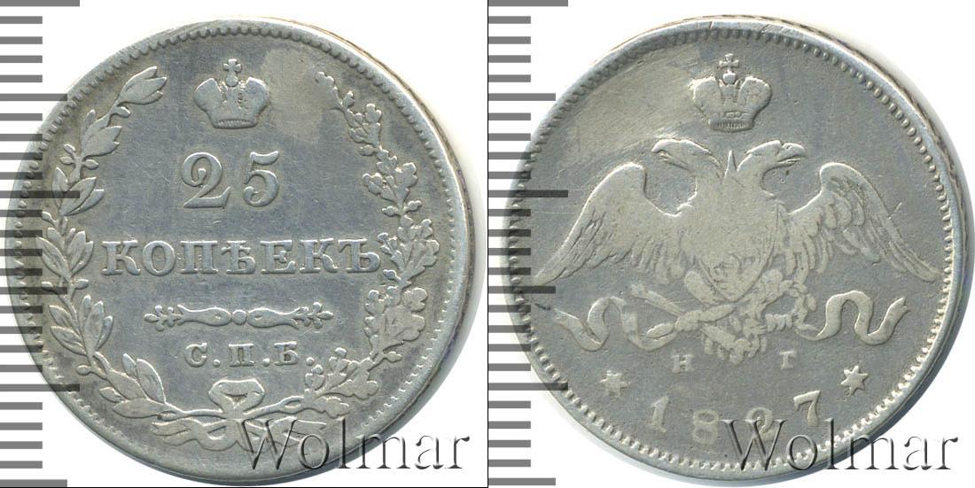 Заделано отверстие. Санкт-Петербургский монетный двор. Биткин №# 805.123-124, тираж 1 860 002; Уздеников №# 1515. По каталогу Wolmar # 115/1. 25 копеек СПБ НГ