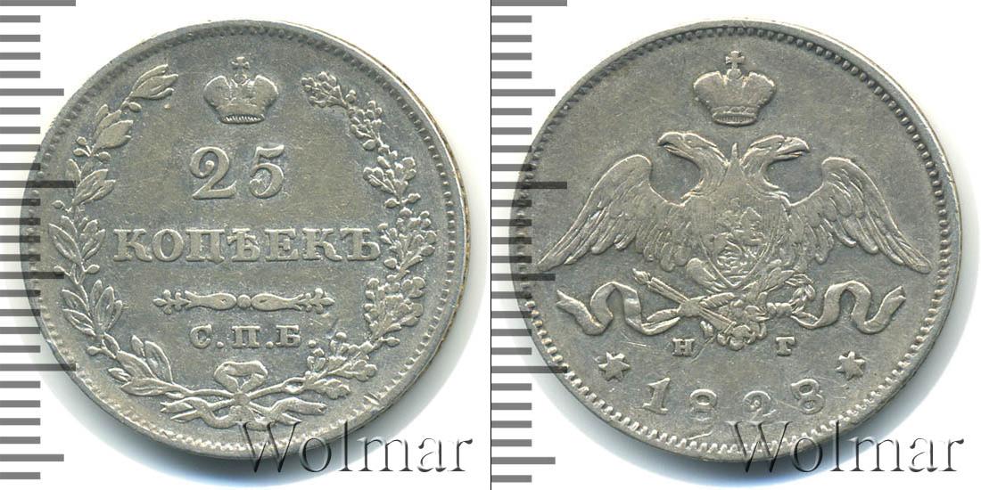 Санкт-Петербургский монетный двор. Биткин редкость - R, №# 805.126, тираж 320 003; Уздеников №# 1521, Петров - 2 рубля. По каталогу Wolmar # 115/2. 25 копеек R, Петров - 2 рубля. СПБ НГ