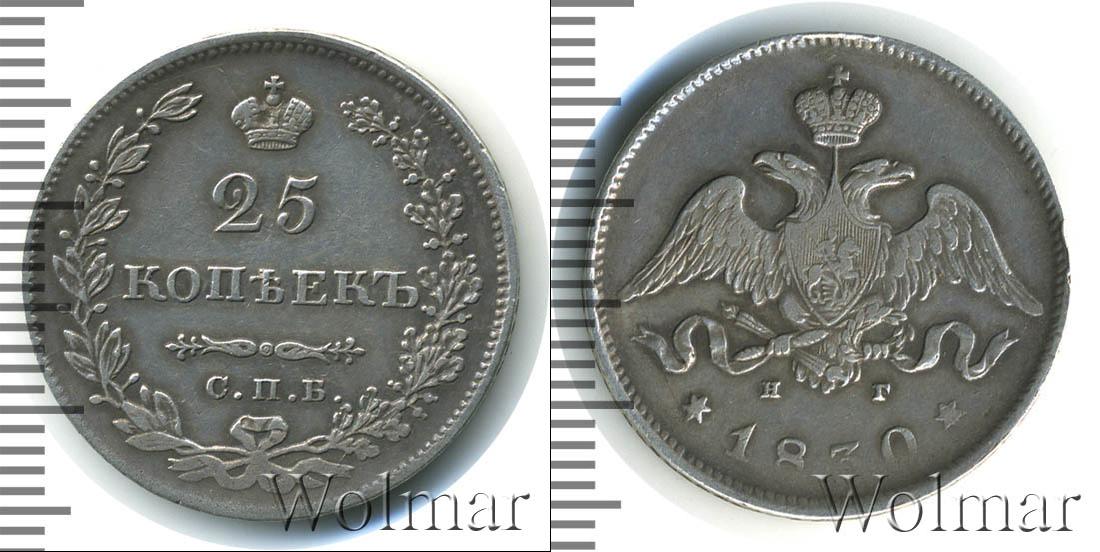 Двухсторонний непрочекан вверху монеты. Санкт-Петербургский монетный двор. Биткин №# 805.129-130, тираж 1 160 006; Уздеников №# 1534. По каталогу Wolmar # 115/5. 25 копеек СПБ НГ