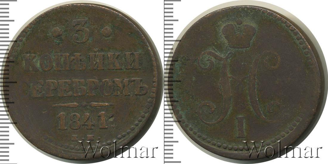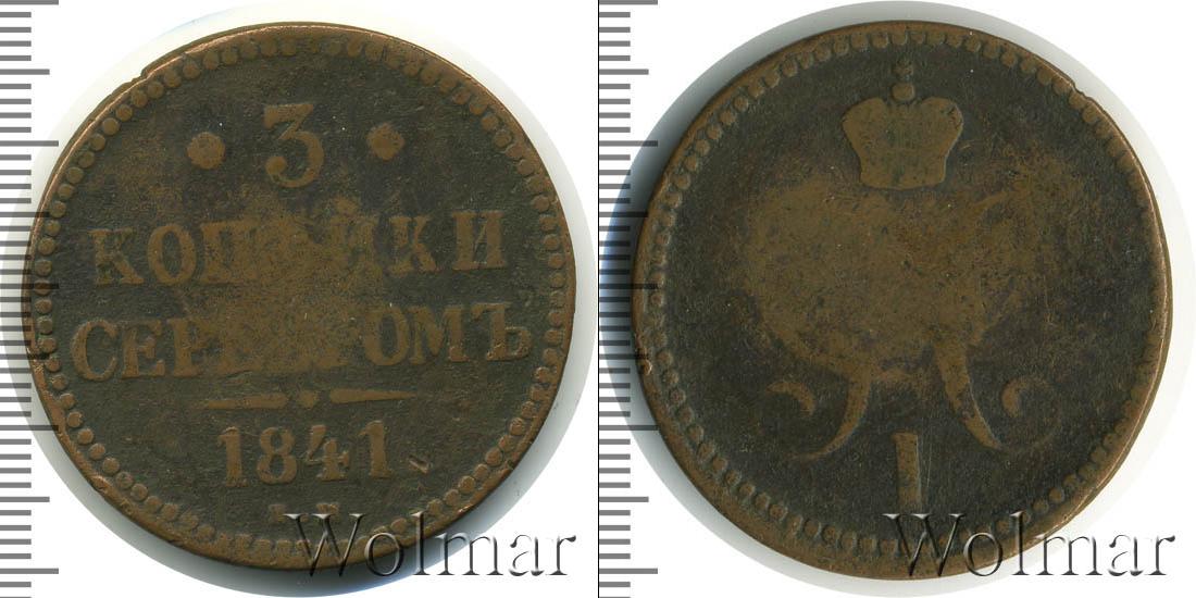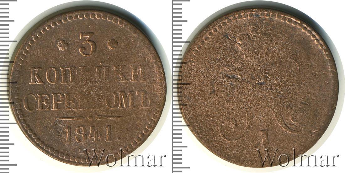 Сделаны отметки о номинале, дате эмиссии и монетном дворе Екатеринбурга, где была отчеканена эта партия. Сверху вниз начертано: 3 КОПЕЙКИ СЕРЕБРО 1841 Е.М. Около номинала справа и слева – цветочные розетки.