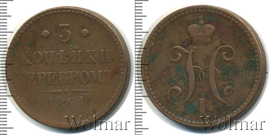 Медная монета массой 30,72 г. и диаметром 39 мм. По центре изображен вензель императора Николая Первого. Вверху Большая корона России. Вдоль канта идет точечный орнамент (как и с оборотной стороны монеты).