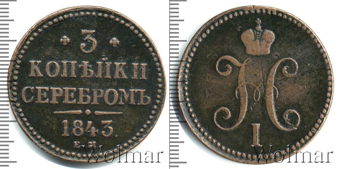 Цена монеты 3 копейки 1843 года в городе Москва на сегодня, 17 марта 2026 года