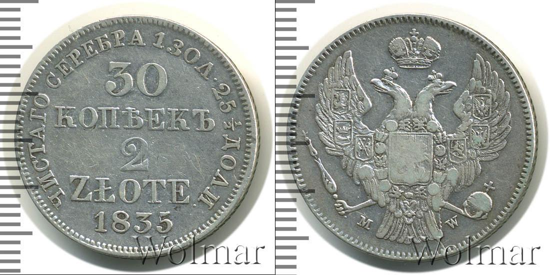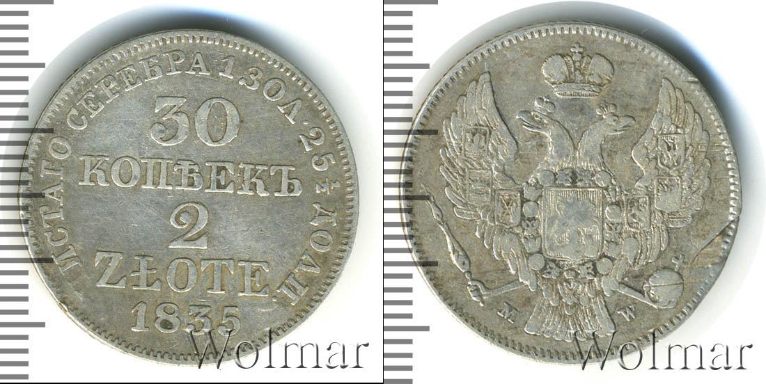 Цена монеты 30 копеек—2 злотых 1835 года в городе Москва на сегодня, 03 января 2026 года