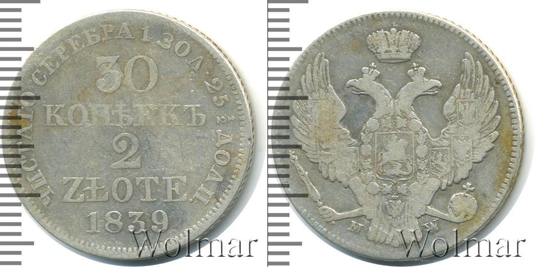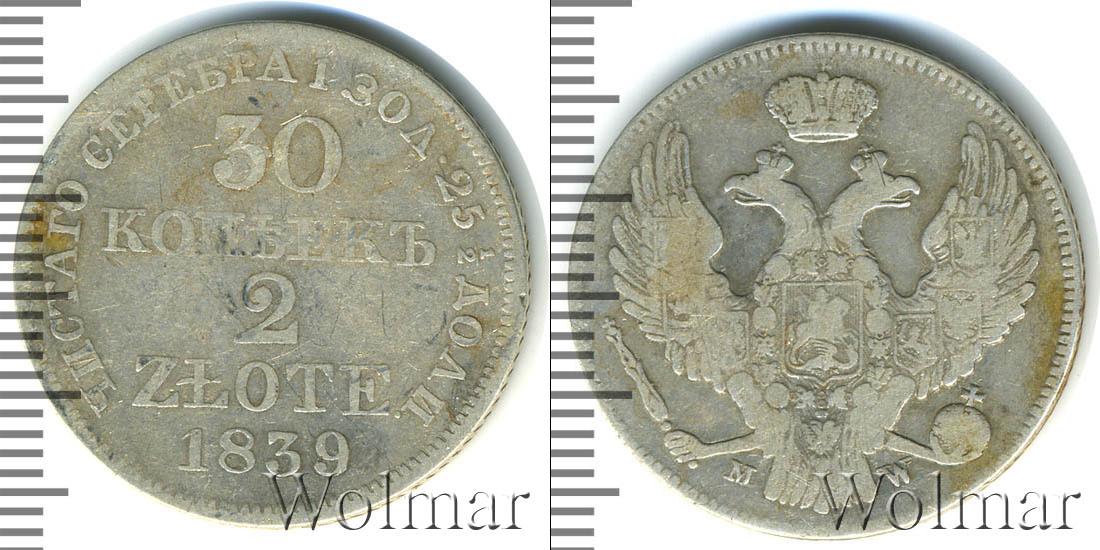 Цена монеты 30 копеек—2 злотых 1839 года в городе Москва на сегодня, 03 января 2026 года