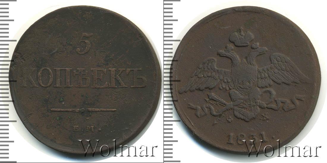 Инициалы Федора Хвощинского мелким шрифтом указаны внизу геральдического символа Российской Империи. Фигура коронованного двуглавого орла расположена в центре легенды. Грудь птицы закрыта щитом, на котором выгравирован герб Московского княжества. Громовые стрелы с факелом и лавровым венком пернатый хищник держит в ларах. Вдоль нижней части гурта написан год выпуска – «1831».
