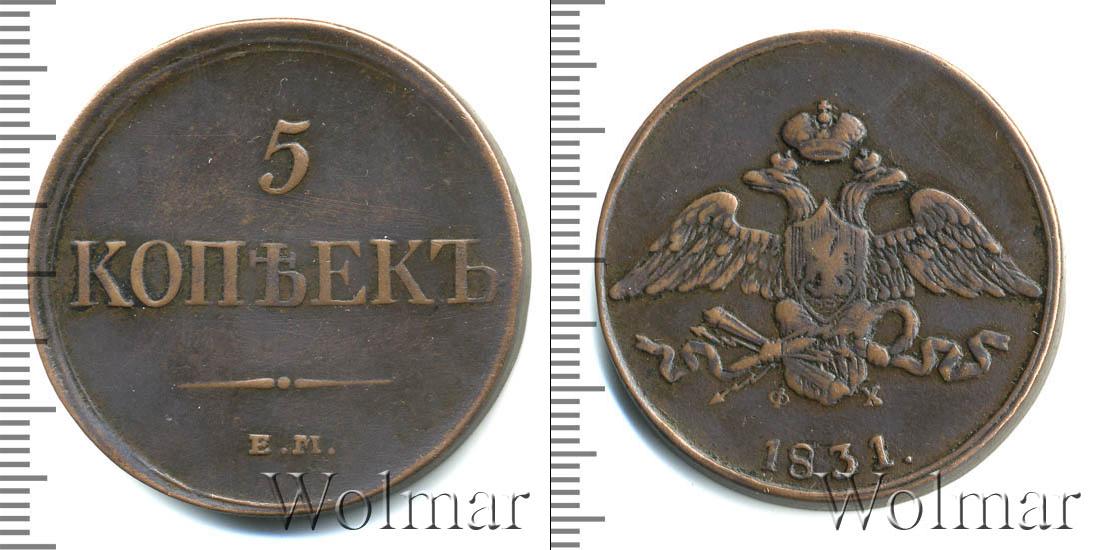 Инициалы Федора Хвощинского мелким шрифтом указаны внизу геральдического символа Российской Империи. Фигура коронованного двуглавого орла расположена в центре легенды. Грудь птицы закрыта щитом, на котором выгравирован герб Московского княжества. Громовые стрелы с факелом и лавровым венком пернатый хищник держит в ларах. Вдоль нижней части гурта написан год выпуска – «1831».