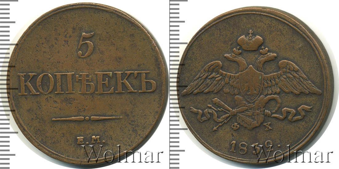 «Е.М.» расположено внизу легенды. Над символом монетного двора нарисован геометрический орнамент. Штрихпунктирная линия подчеркивает номинал. «5 КОПЪЕКЪ» написано горизонтально заглавными буквами крупным шрифтом.