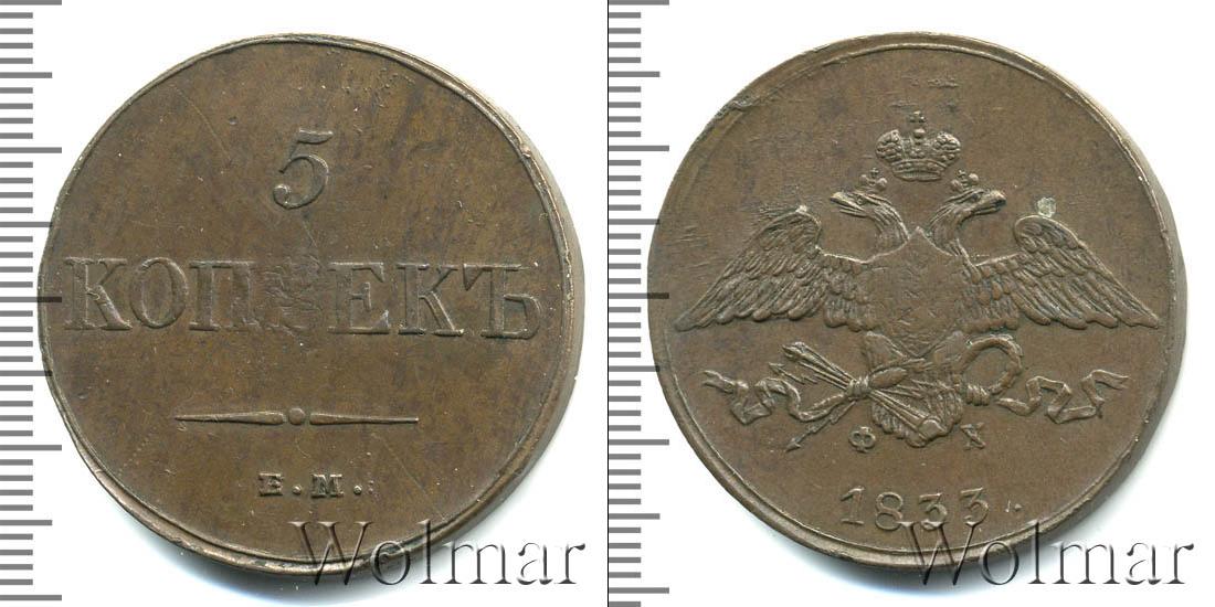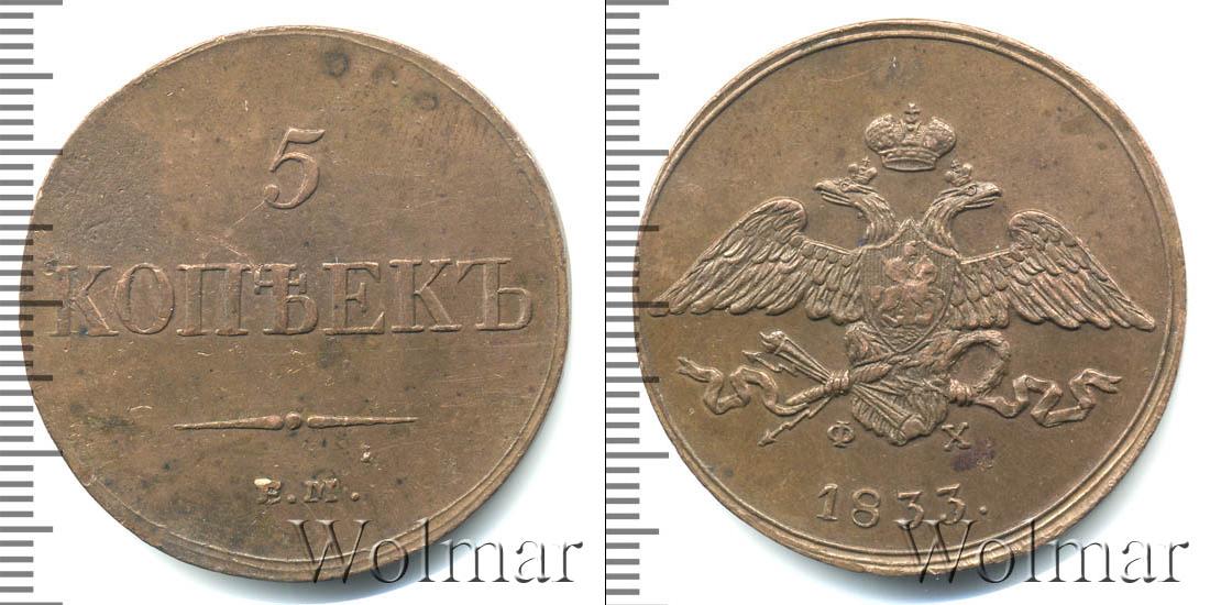 В центре легенды симметрично нарисован двуглавый орел. В лапах птицы расположены: лавровый венок, громовые стрелы и факел. С двух сторон от хвоста развевается лента ордена Святого Апостола Андрея Первозванного. Головы геральдического символа Российской Империи украшены имперской короной. Год тиража «1833» написан радиально вдоль нижнего полукруга. Инициалы минцмейстера «ФХ» указаны под лапами.