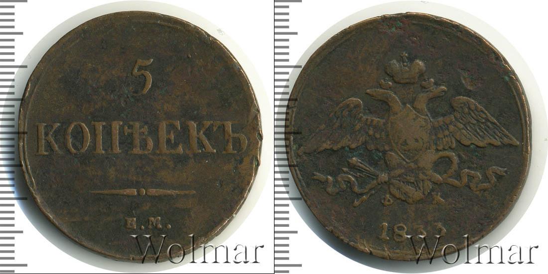 Цена монеты 5 копеек 1833 года в городе Москва на сегодня, 02 января 2026 года