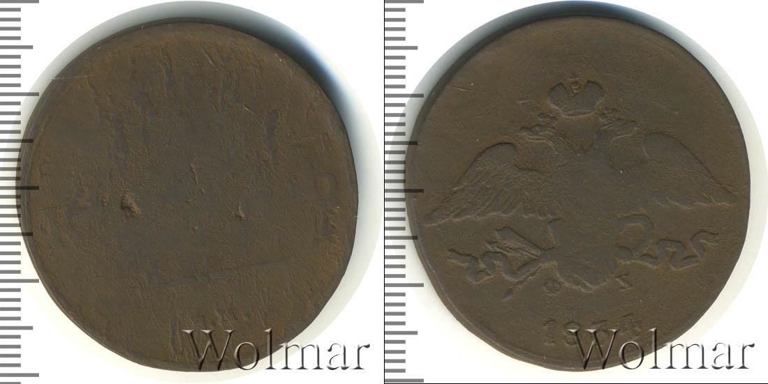 Единственным выгравированным элементом на диске является государственная геральдика. Коронованный двуглавый орел с расправленными крыльями изображен в центре композиции. От хвоста и лап птицы развеваются два конца ленты в противоположные стороны. Дополняют гравюру информационные сведения: год эмиссии «1834», и аббревиатура «ФХ». Надписи занимают нижнюю часть легенды.