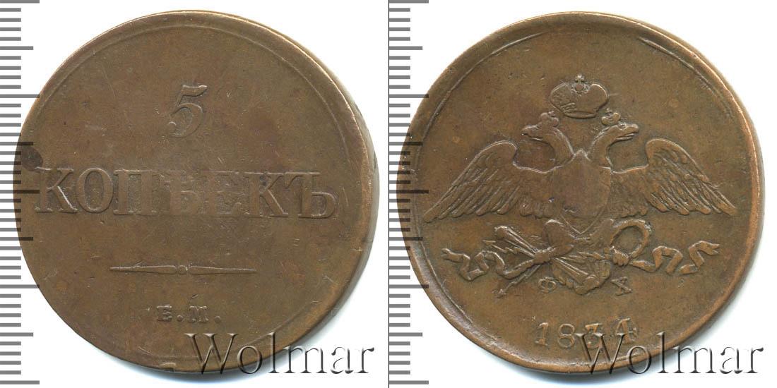 Единственным выгравированным элементом на диске является государственная геральдика. Коронованный двуглавый орел с расправленными крыльями изображен в центре композиции. От хвоста и лап птицы развеваются два конца ленты в противоположные стороны. Дополняют гравюру информационные сведения: год эмиссии «1834», и аббревиатура «ФХ». Надписи занимают нижнюю часть легенды.