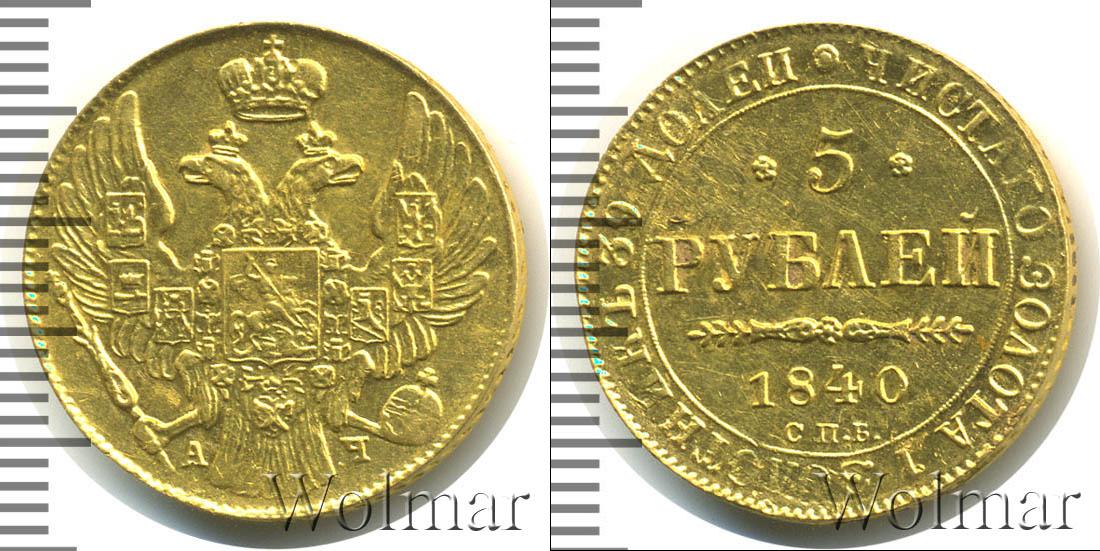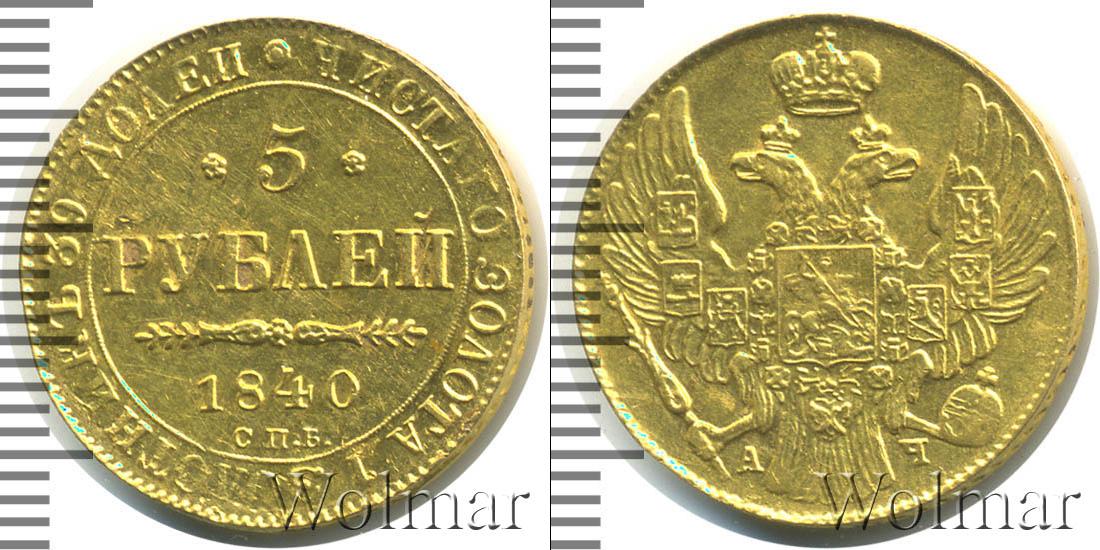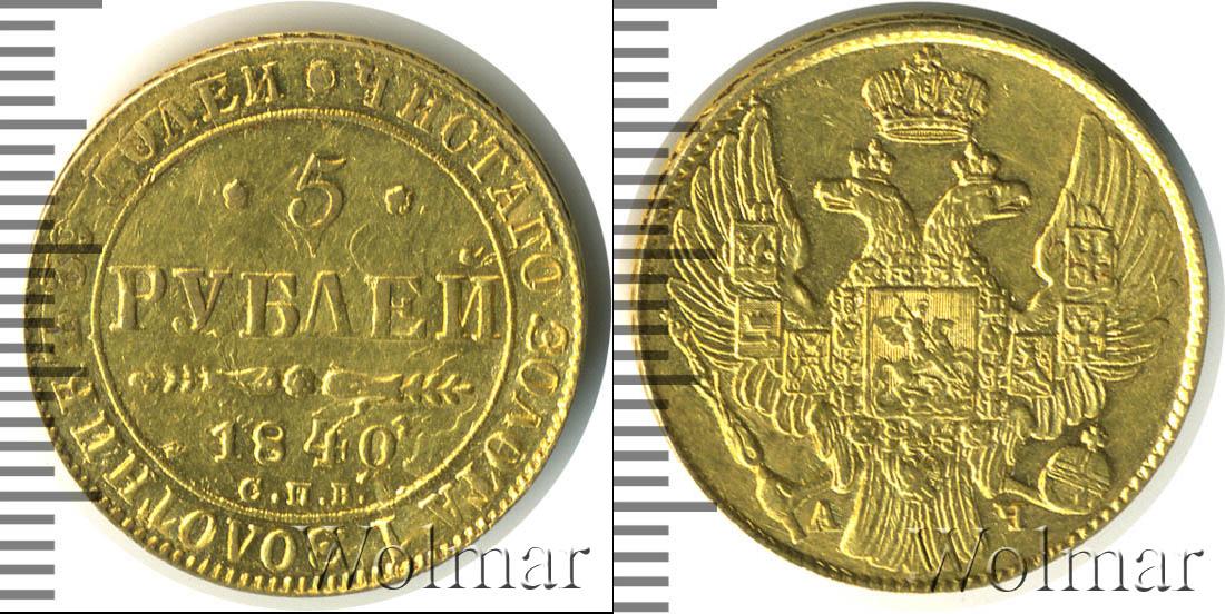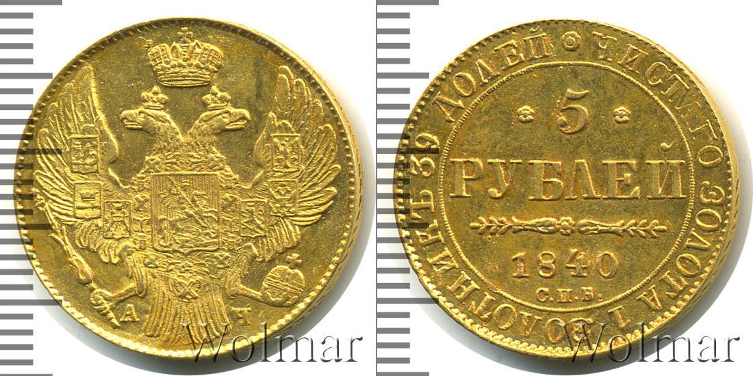 Вдоль гурта диска мы видим радиальную надпись «ЧИСТОГО ЗОЛОТА 1 ЗОЛОТНИК 39 ДОЛЕЙ». Вверху ее разделяет цветочная розетка. В центре отмечены номинал, год выпуска и монетный двор, где была отчеканена эта партия – 5 РУБЛЕЙ 1840 С.П.Б.
