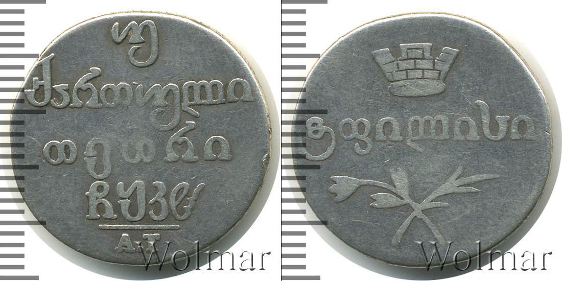 Вверху отмечен номинал монеты – двойной абаз, 40 копеек. По центру в две строки расположена надпись: ????????????, обозначающая драгметалл – грузинское серебро. Дата эмиссии – 1828. Внизу мы видим инициалы минцмейстера А.Т.
