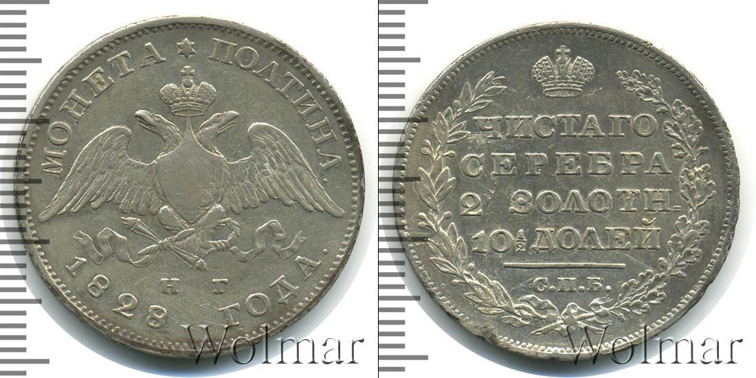 Серебряная монета с содержанием химически чистого металла 9 г. В центре изображение двуглавого орла с гербом города Москвы и императорской короной. В верхней части диска отмечен номинал: МОНЕТА ПОЛТИНА. А внизу инициалы минцмейстера Н.Грачева, и надпись: 1828 ГОДА (когда была выпущена эта партия).
