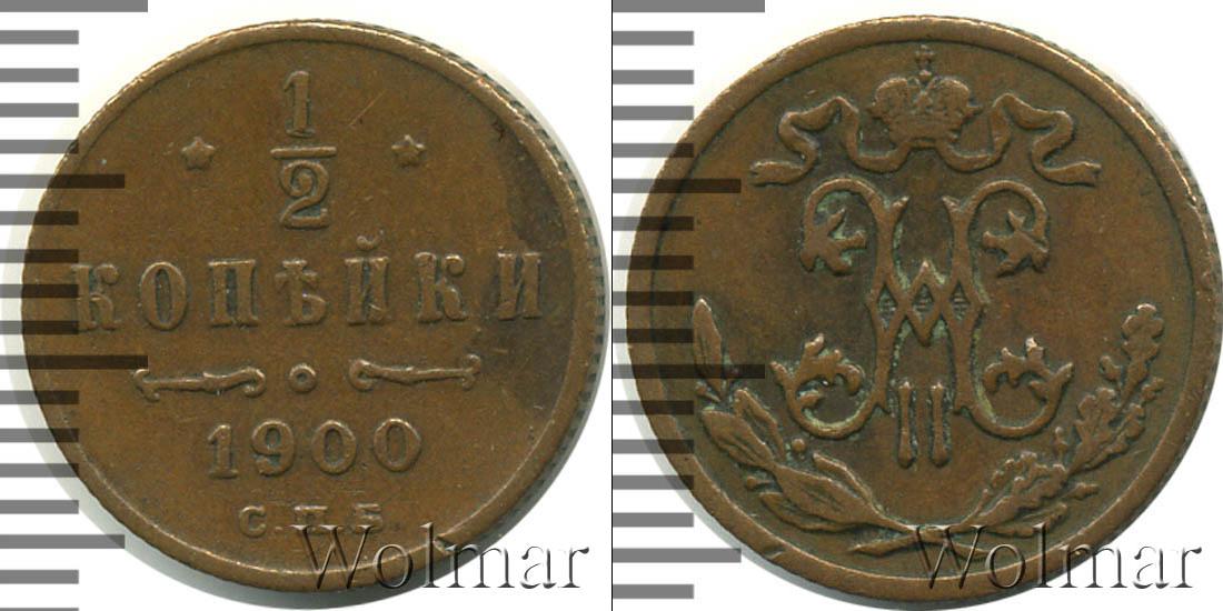 Завод Розенкранца в С. Петергбурге. Биткин №# 951.309, тираж 36 000 000, Уздеников №# 3892, Казаков №# 261, рейтинг 11. По каталогу Wolmar # 203/41. 1/2 копейки СПБ