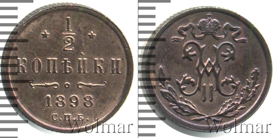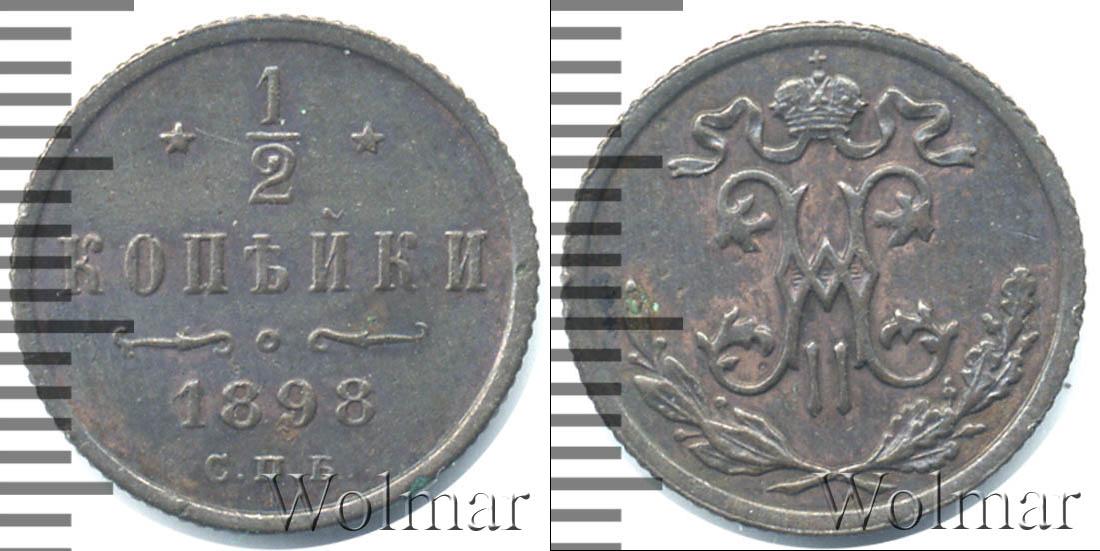 Химическое окрашивание. Бирмингемский монетный двор. Биткин №# 950.294, тираж 47 200 000, Уздеников №# 3882, Казаков №# 129, тираж 76 000 000, рейтинг 16. По каталогу Wolmar # 203/39. 1/2 копейки СПБ