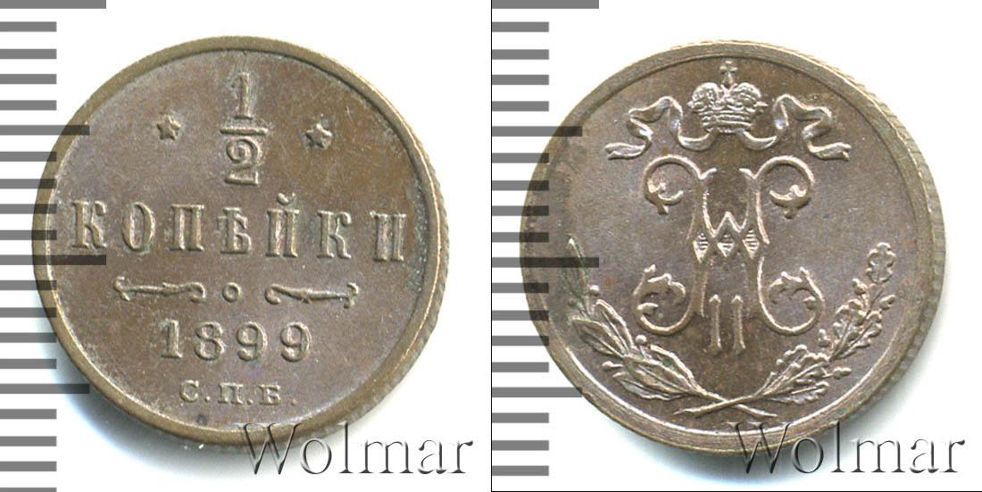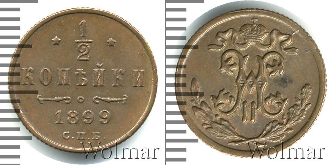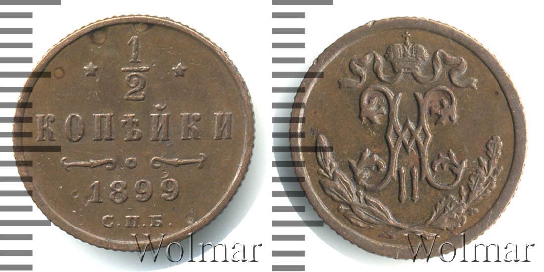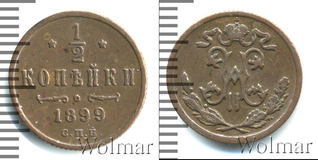 Завод Розенкранца в С. Петербурге. Биткин №# 951.308, тираж 76 000 000, Уздеников №# 3887, Казаков №# 194 "вензель с четырьмя завитками вверху", рейтинг 17. Wolmar # 203/40. 1/2 копейки СПБ