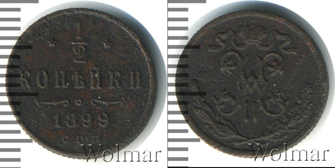 Завод Розенкранца в С. Петербурге. Биткин №# 951.308, тираж 76 000 000, Уздеников №# 3887, Казаков №# 194 "вензель с четырьмя завитками вверху", рейтинг 17. Wolmar # 203/40. 1/2 копейки СПБ