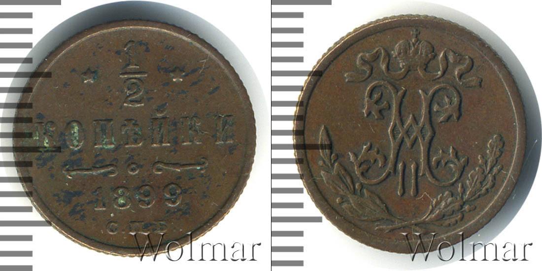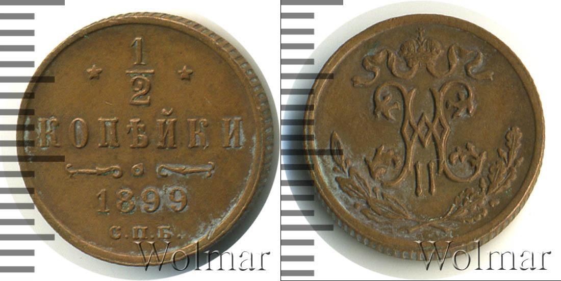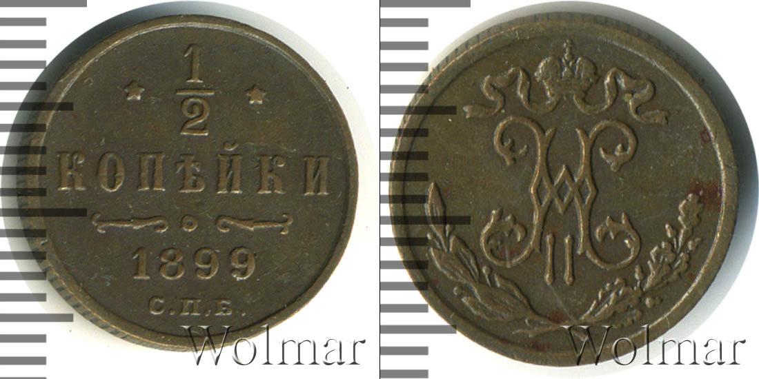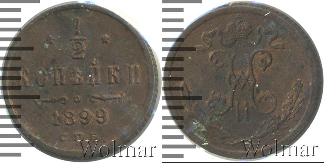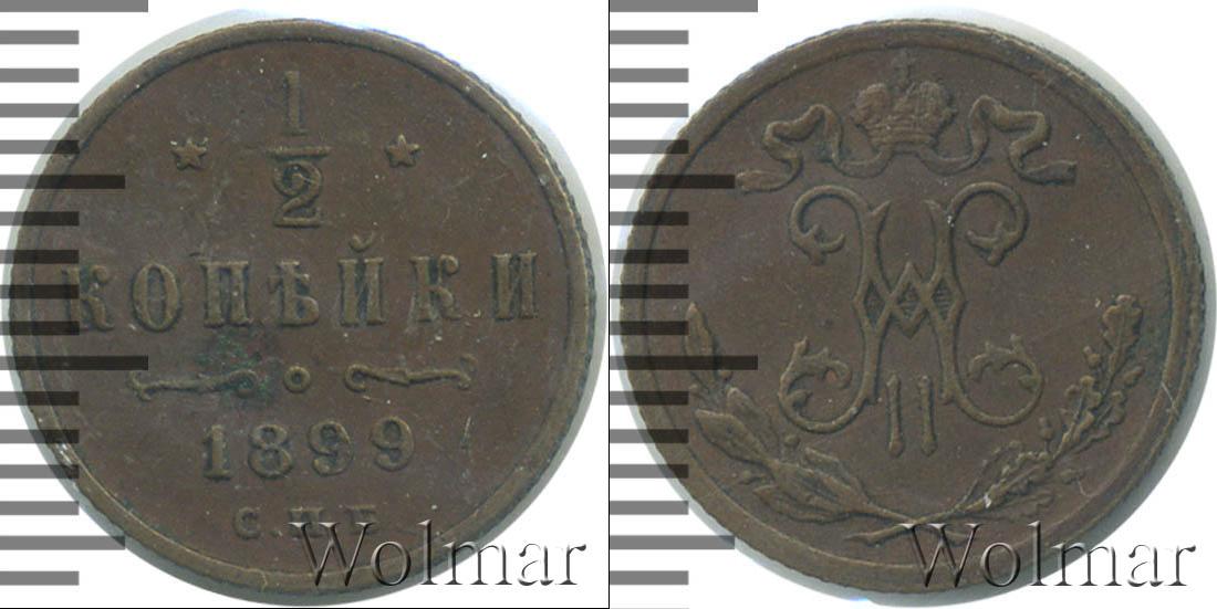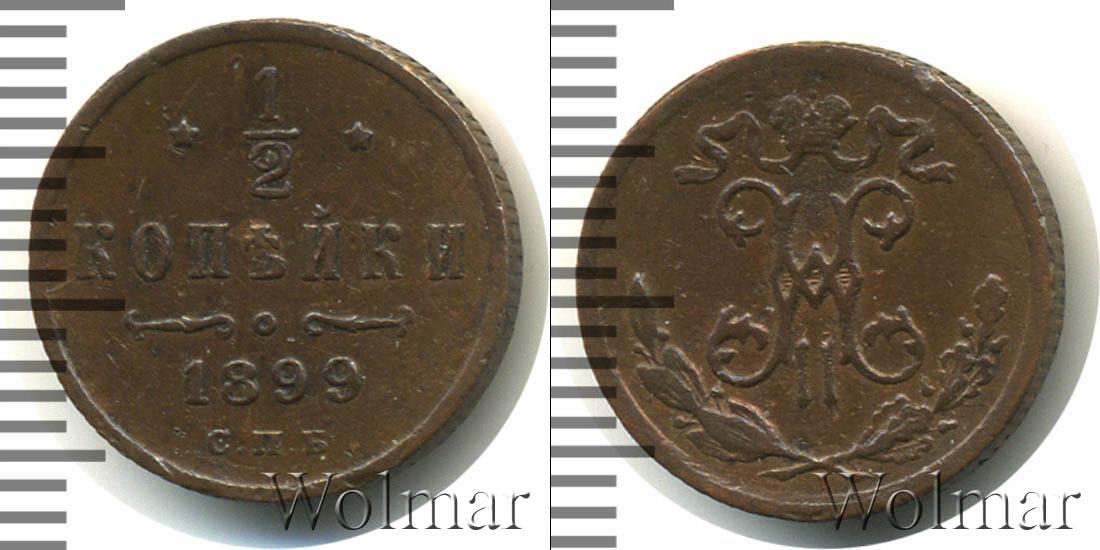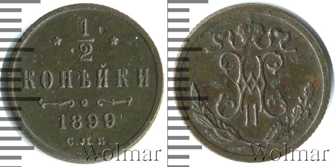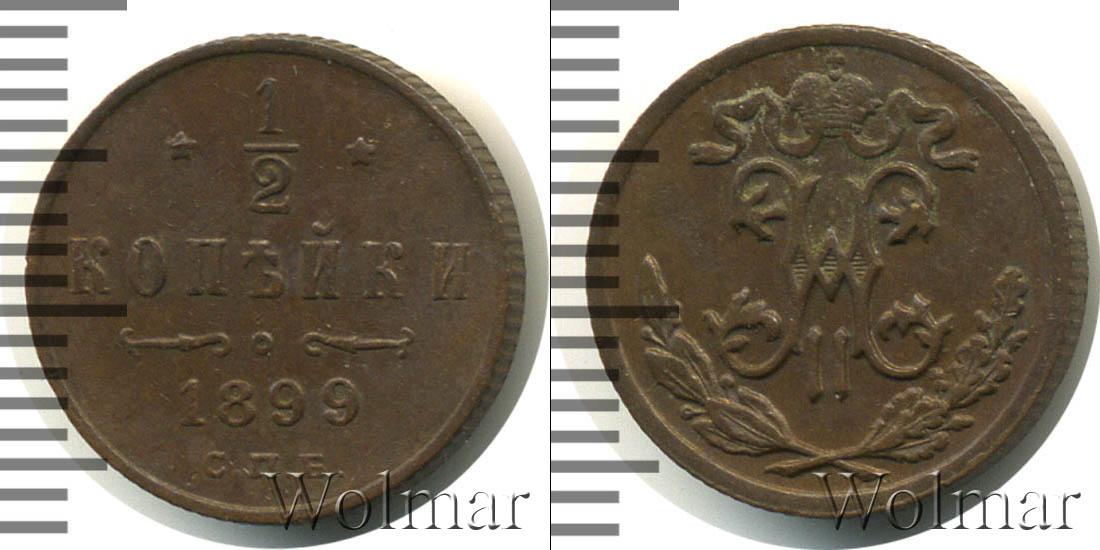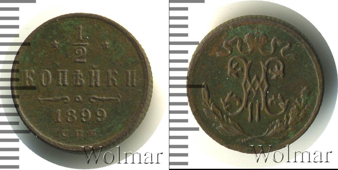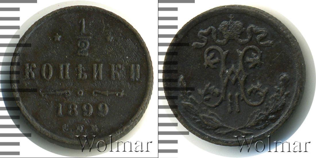 Завод Розенкранца в С. Петергбурге. Биткин №# 951.307, "особый вензель (вверху три завитка)", тираж 76 000 000, Уздеников №# 3887, Казаков №# 195 "вензель с тремя завитками вверху", рейтинг 6. Wolmar # 203/40. 1/2 копейки СПБ