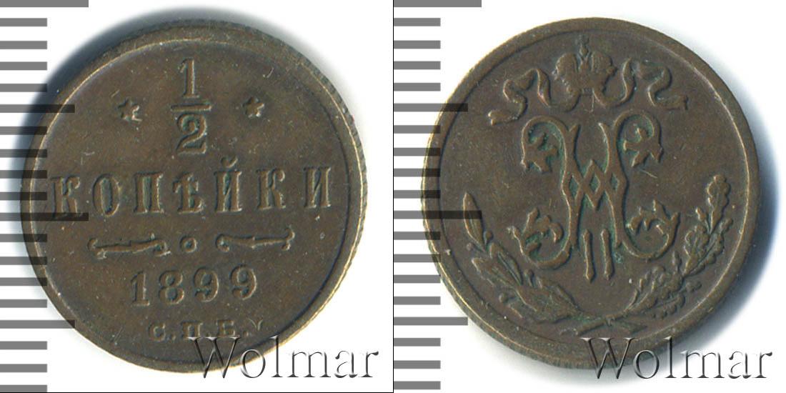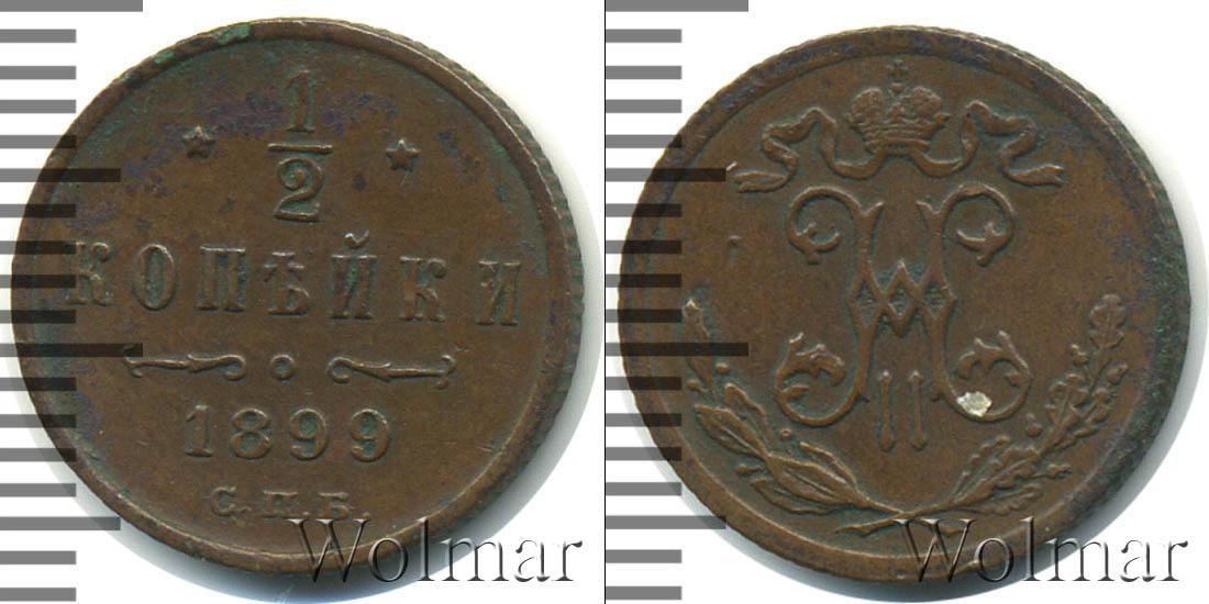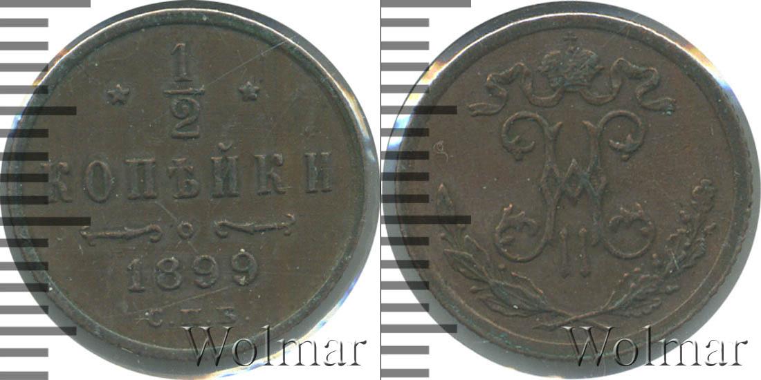 Завод Розенкранца в С. Петербурге. Биткин №# 951.308, тираж 76 000 000, Уздеников №# 3887, Казаков №# 194 "вензель с четырьмя завитками вверху", рейтинг 17. Wolmar # 203/40. 1/2 копейки СПБ