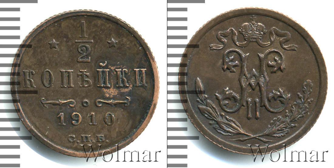 Штемпельный блеск. Санкт-Петербургский монетный двор. Биткин №# 949.270, тираж 24 000 000, Уздеников №# 3927, Казаков №# 387, тираж 64 700 000, рейтинг 19. По каталогу Wolmar # 203/44. 1/2 копейки СПБ