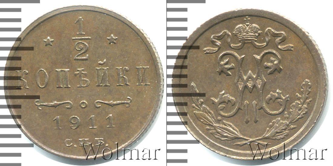 Штемпельный блеск. Санкт-Петербургский монетный двор. Биткин №# 949.271, тираж 35 800 011, Уздеников №# 3933, Казаков №# 405, рейтинг 12. По каталогу Wolmar # 203/45. 1/2 копейки СПБ