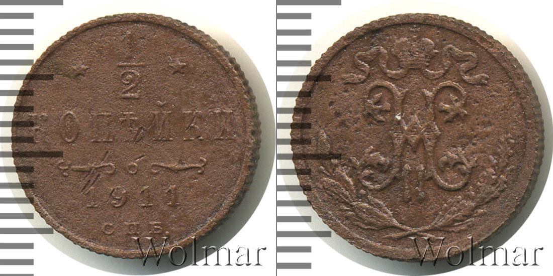 Санкт-Петербургский монетный двор. Биткин №# 949.271, тираж 35 800 011, Уздеников №# 3933, Казаков №# 405, рейтинг 12. По каталогу Wolmar # 203/45. 1/2 копейки СПБ