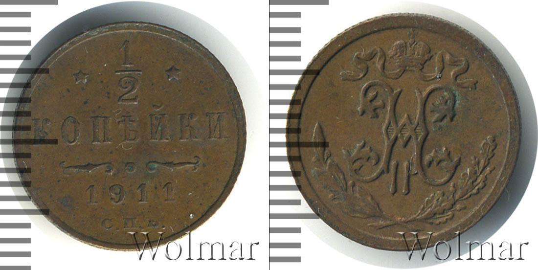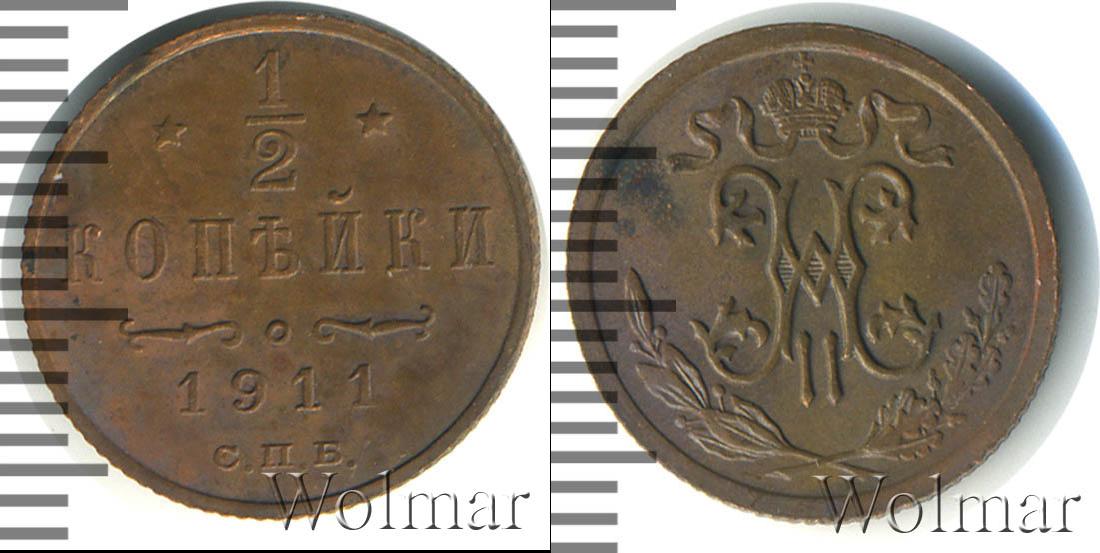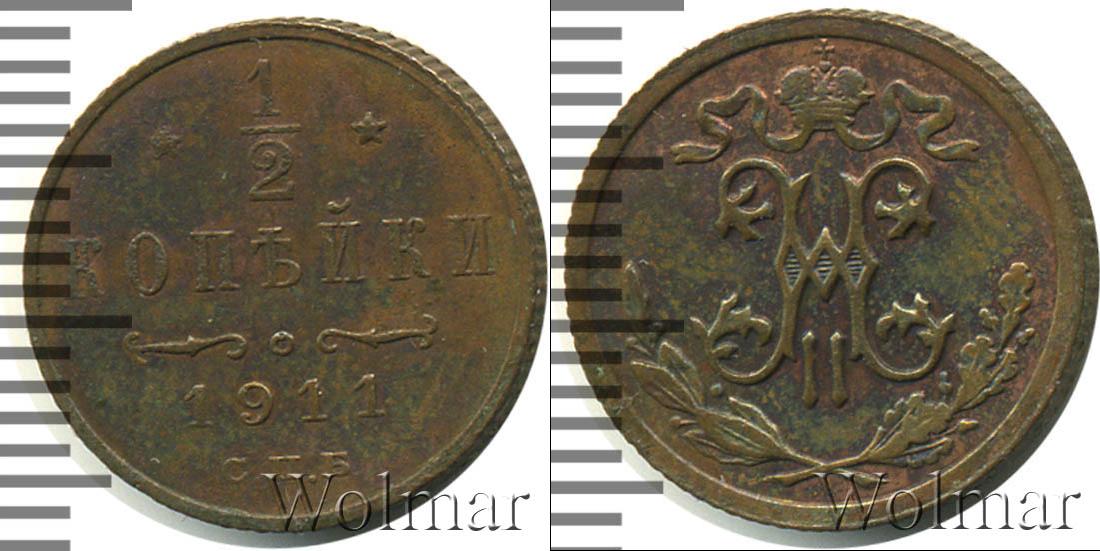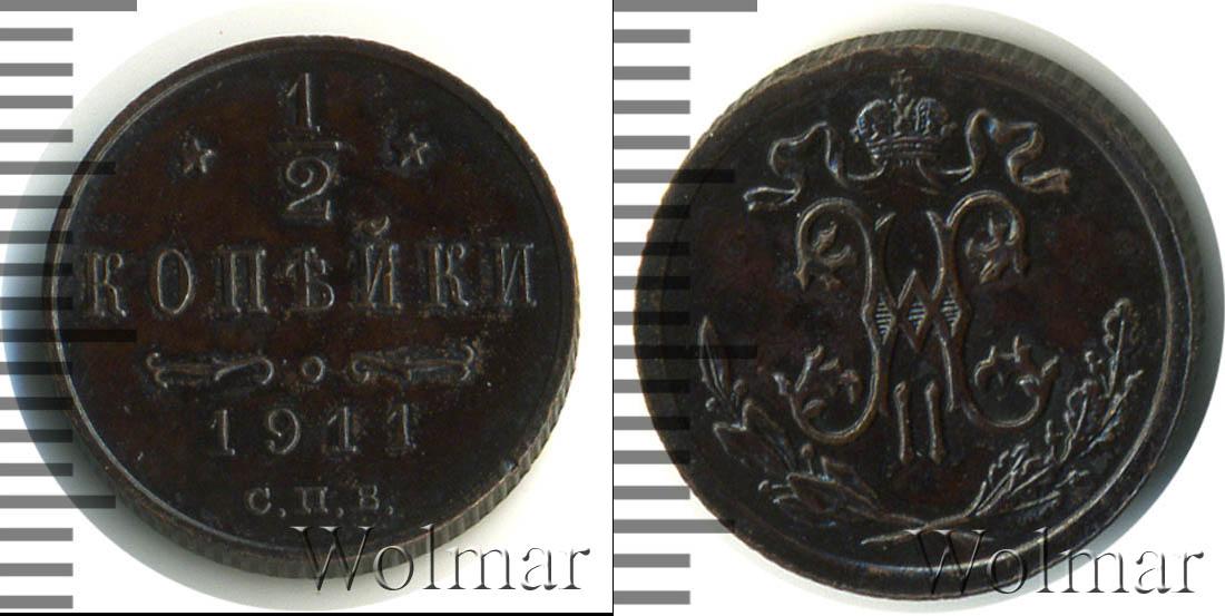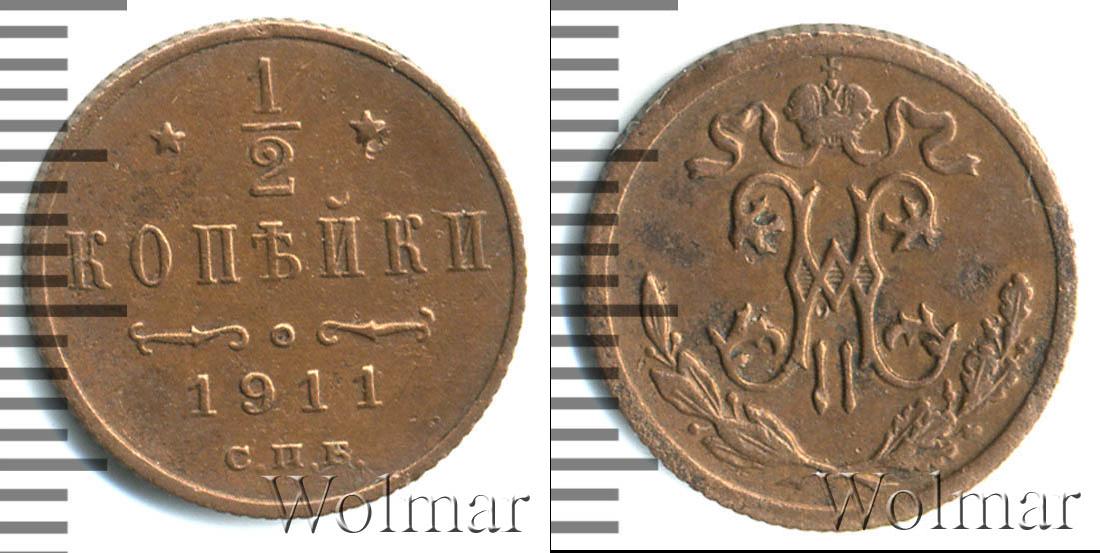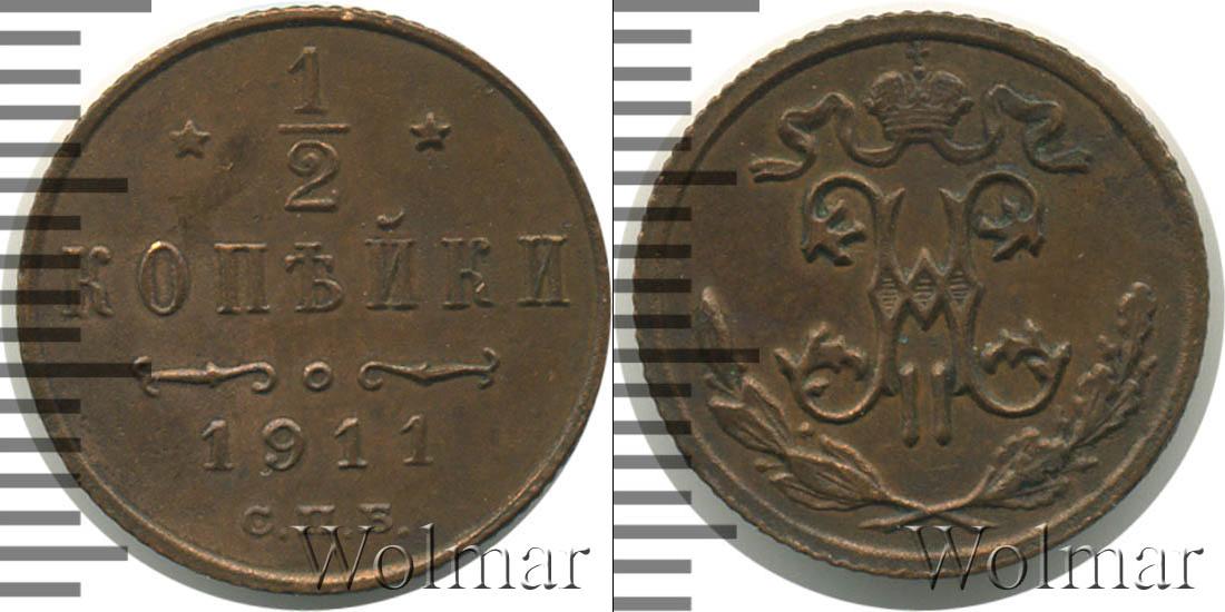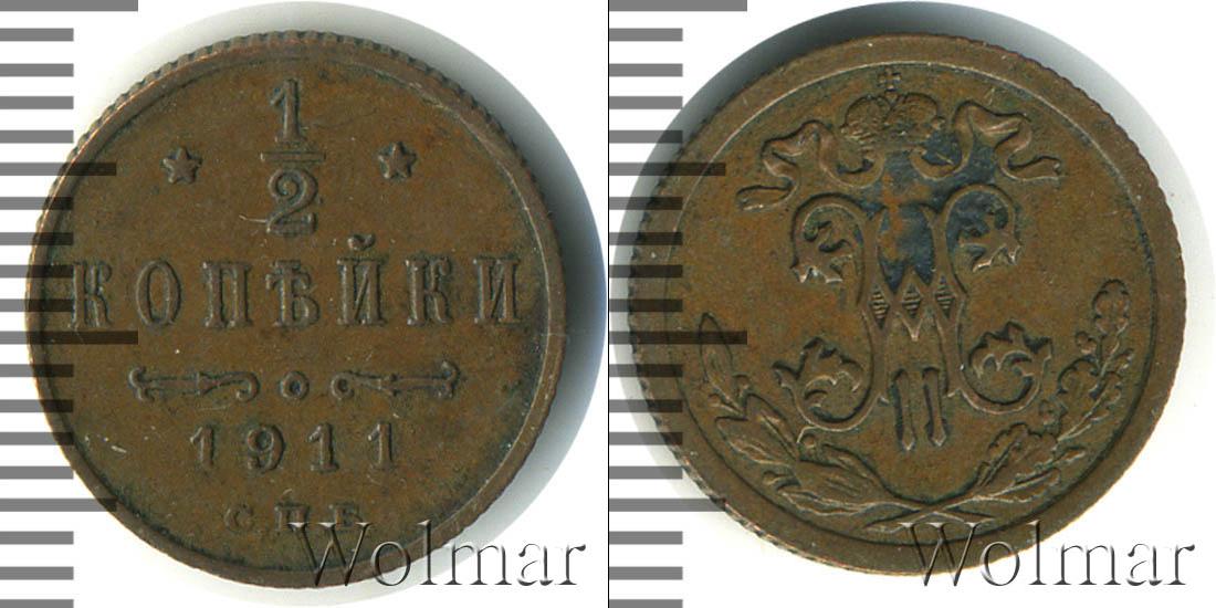 Санкт-Петербургский монетный двор. Биткин №# 949.271, тираж 35 800 011, Уздеников №# 3933, Казаков №# 405, рейтинг 12. По каталогу Wolmar # 203/45. 1/2 копейки СПБ