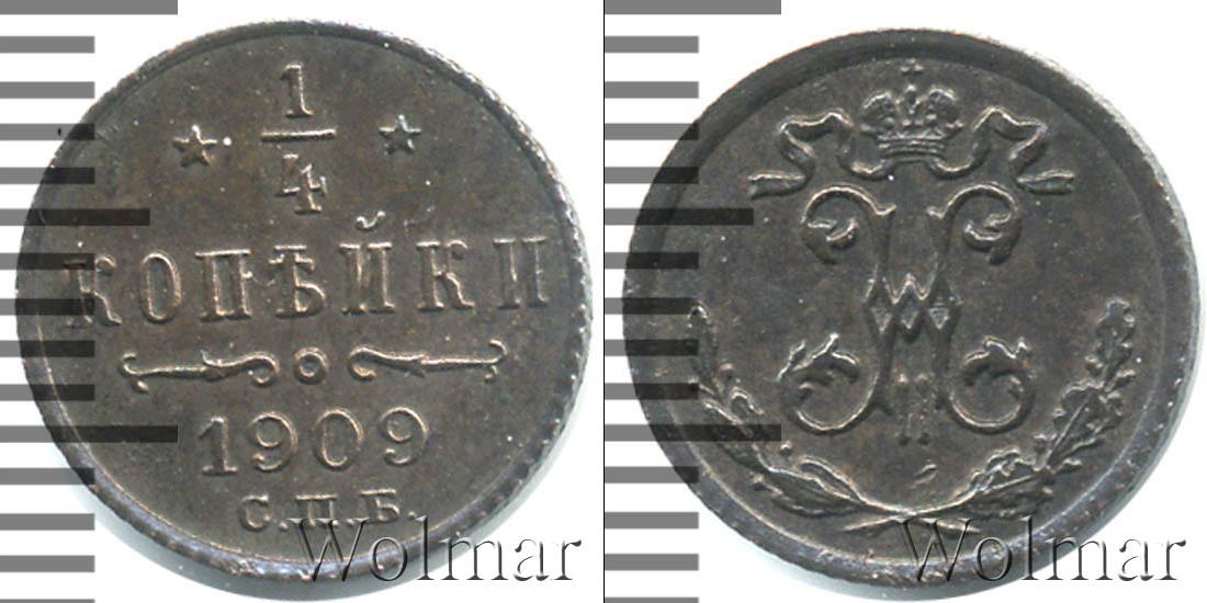 Штемпельный блеск. Санкт-Петербургский монетный двор. Биткин №# 949.279, тираж 2 000 000, Уздеников №# 3923, Казаков №# 372, рейтинг 6. По каталогу Wolmar # 214/42. 1/4 копейки СПБ
