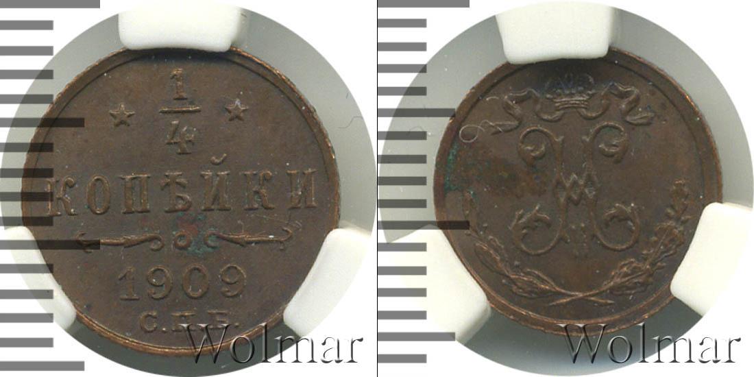 В слабе NGC. Санкт-Петербургский монетный двор. Биткин №# 949.279, тираж 2 000 000, Уздеников №# 3923, Казаков №# 372, рейтинг 6. По каталогу Wolmar # 214/42. 1/4 копейки СПБ