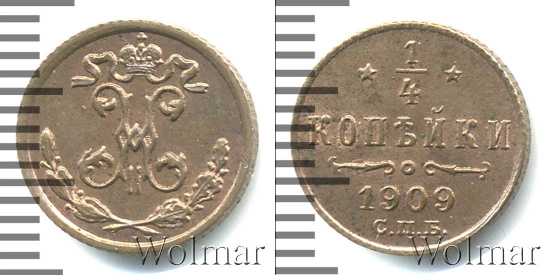 Санкт-Петербургский монетный двор. Биткин №# 949.279, тираж 2 000 000, Уздеников №# 3923, Казаков №# 372, рейтинг 6. По каталогу Wolmar # 214/42. 1/4 копейки СПБ