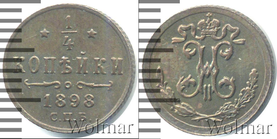Штемпельный блеск. Бирмингемский монетный двор. Биткин №# 950.297, тираж 8 000 000, Уздеников №# 3883. Казаков №# 130, рейтинг 9. По каталогу Wolmar # 214/39. 1/4 копейки СПБ