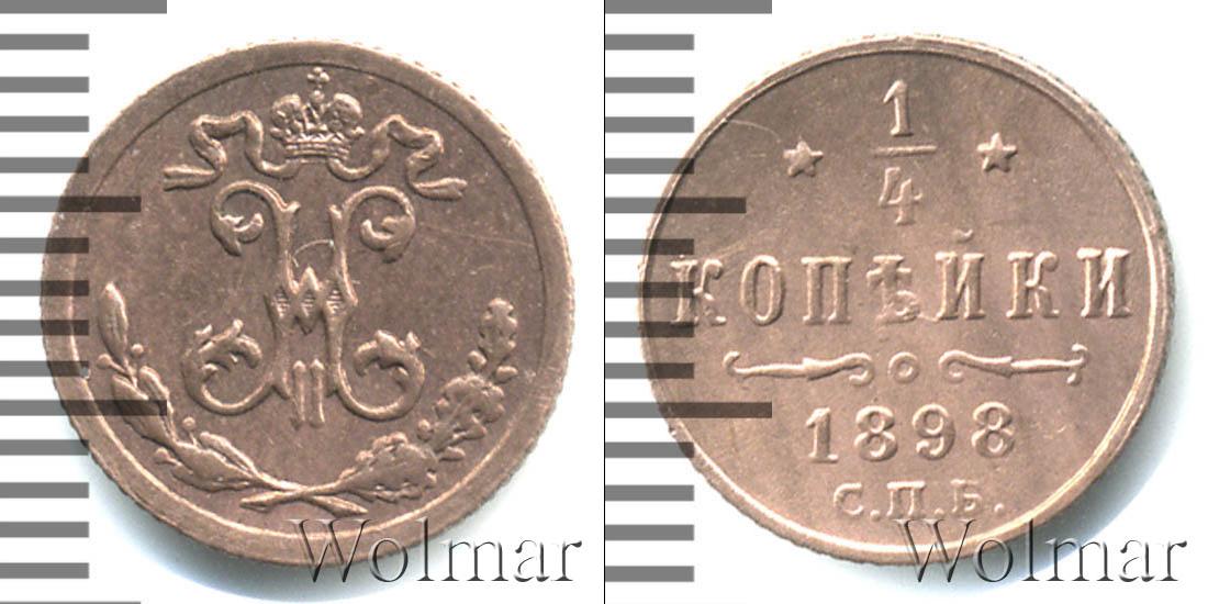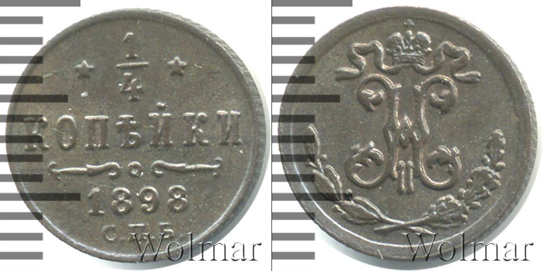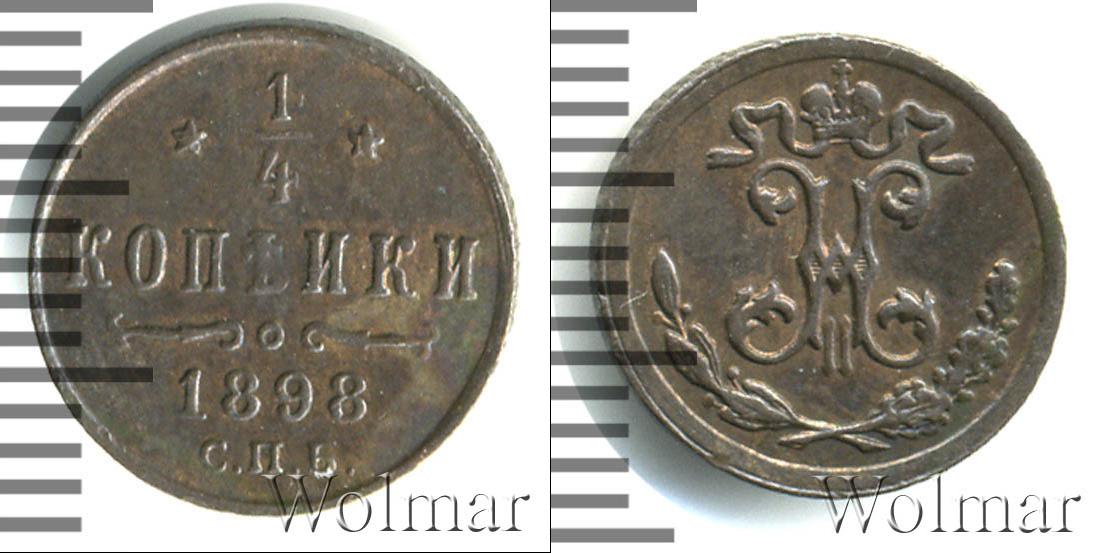 Штемпельный блеск. Бирмингемский монетный двор. Биткин №# 950.297, тираж 8 000 000, Уздеников №# 3883. Казаков №# 130, рейтинг 9. По каталогу Wolmar # 214/39. 1/4 копейки СПБ