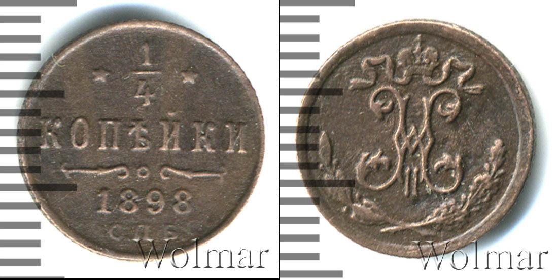 Забоинки, патина, легкая деформация 1/4 копейки СПБ