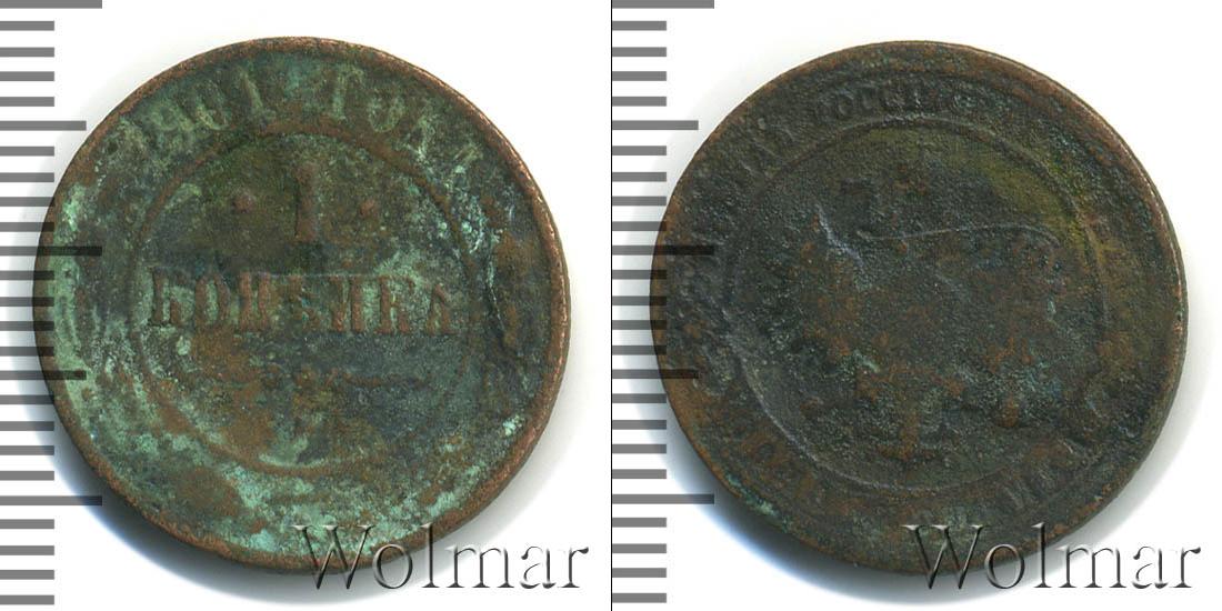 Завод Розенкранца в Санкт-Петербурге. Биткин №# 951.306, тираж 30 000 000, Уздеников №# 3896, Казаков №# 247, рейтинг 10. По каталогу Wolmar # 191/41 1 копейка СПБ