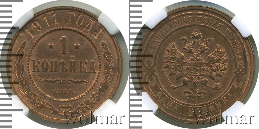Цена монеты 1 копейка 1911 года в городе Москва на сегодня, 03 марта 2026 года